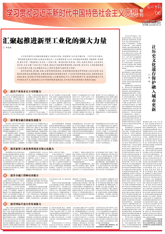 《光明日報》學習貫徹習近平新時代中國特色社會主義思想??l(fā)《新型工業(yè)化》編委會名譽主任、南京航空航天大學黨委書記、中國工程院院士單忠德署名文章《匯聚起推進新型工業(yè)化的強大力量》,全文為您分享如下: