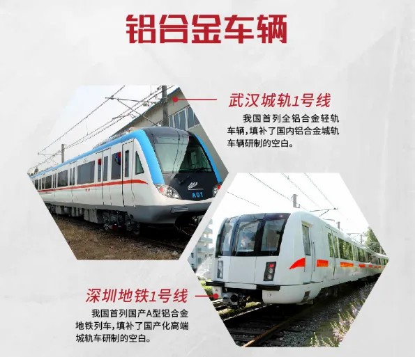 首列B型全鋁合金城軌客車(chē),填補(bǔ)了國(guó)內(nèi)鋁合金城軌車(chē)輛研制的空白。 首列A型鋁合金地鐵客車(chē),填補(bǔ)了國(guó)產(chǎn)化高端城軌車(chē)研制的空白。