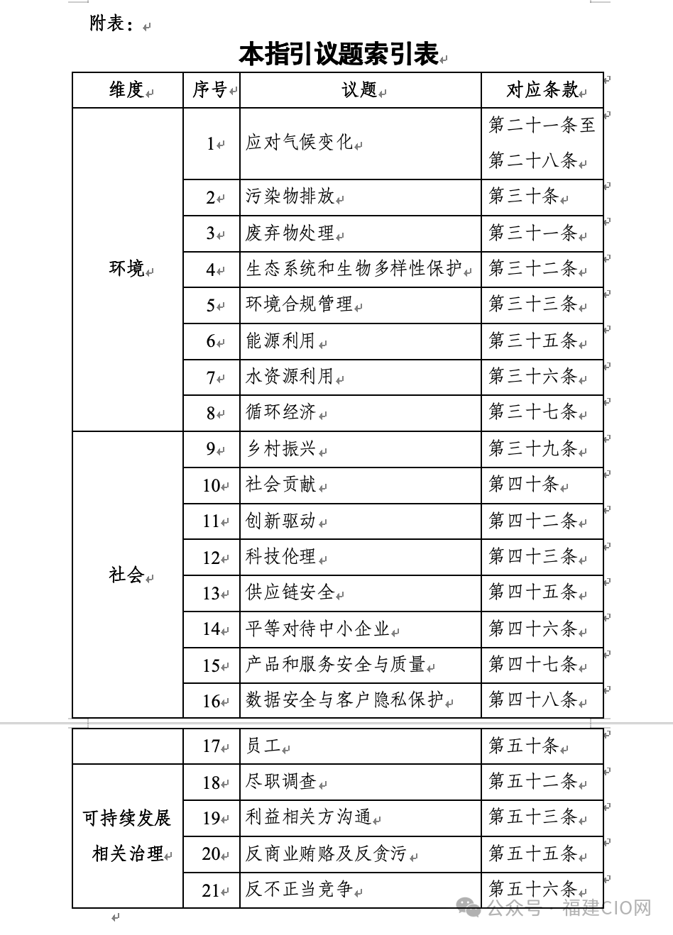 (二)議題:指體現(xiàn)對上市公司、經(jīng)濟(jì)、社會、環(huán)境和利益相關(guān)方具有影響的事項(xiàng)或因素,本指引設(shè)置的議題詳見附表。
