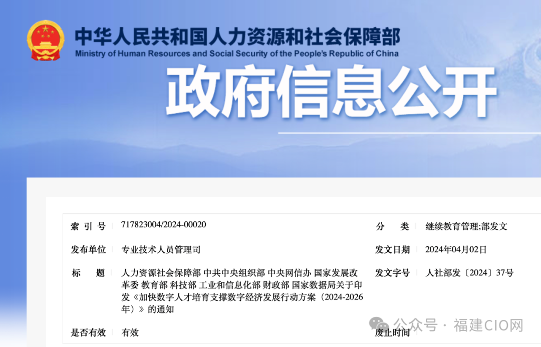 人力資源社會保障部 中共中央組織部 中央網(wǎng)信辦 國家發(fā)展改革委 教育部 科技部 工業(yè)和信息化部 財政部 國家數(shù)據(jù)局關(guān)于印發(fā)《加快數(shù)字人才培育支撐數(shù)字經(jīng)濟發(fā)展行動方案(2024-2026年)》的通知