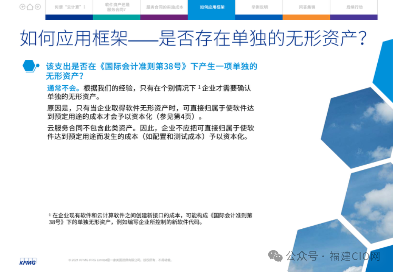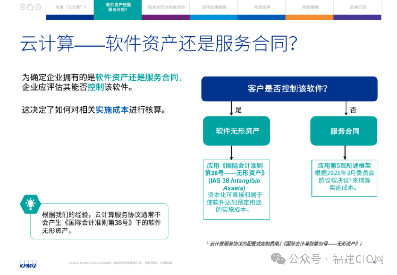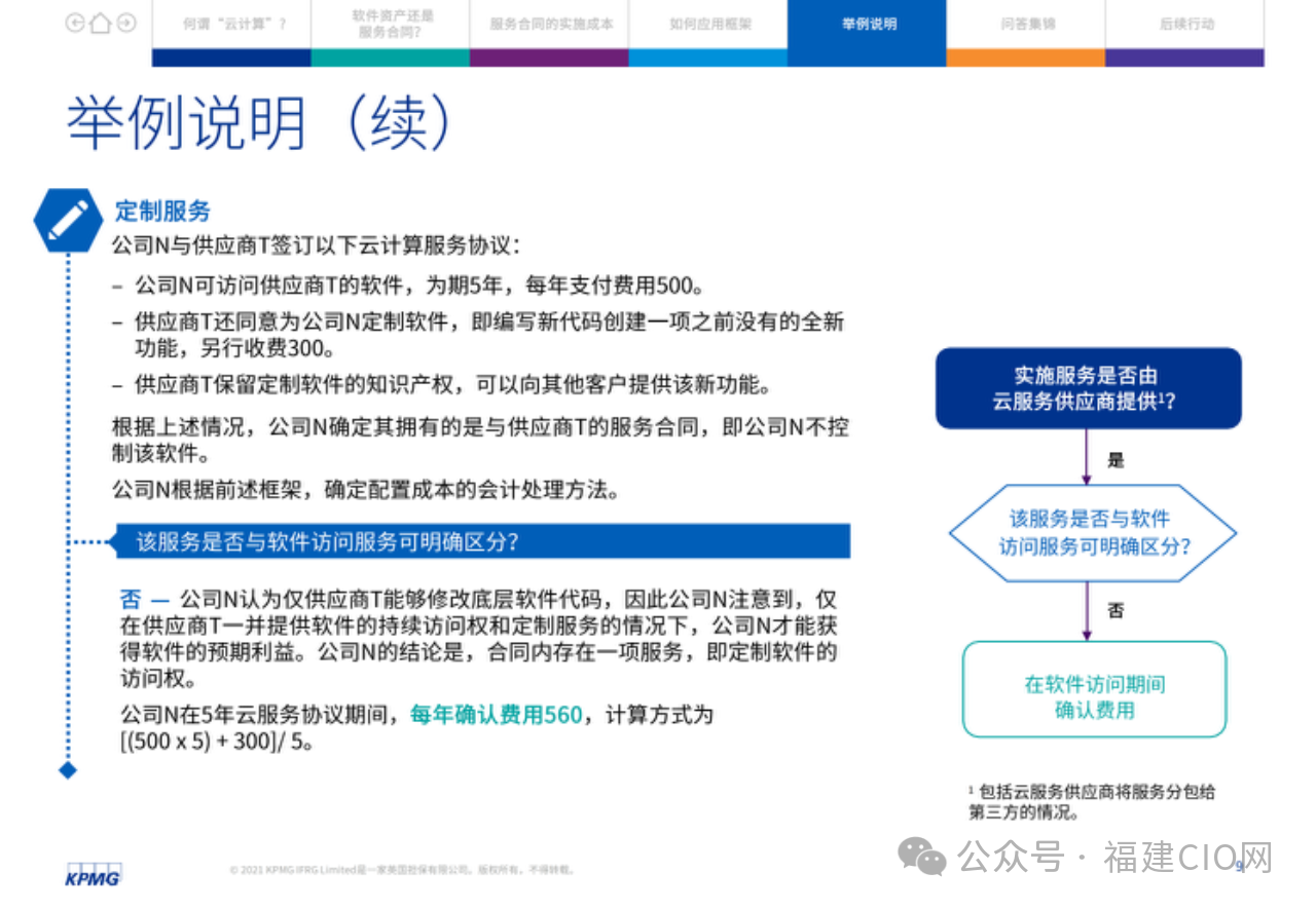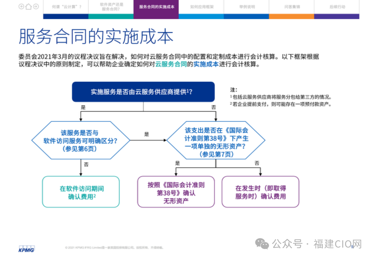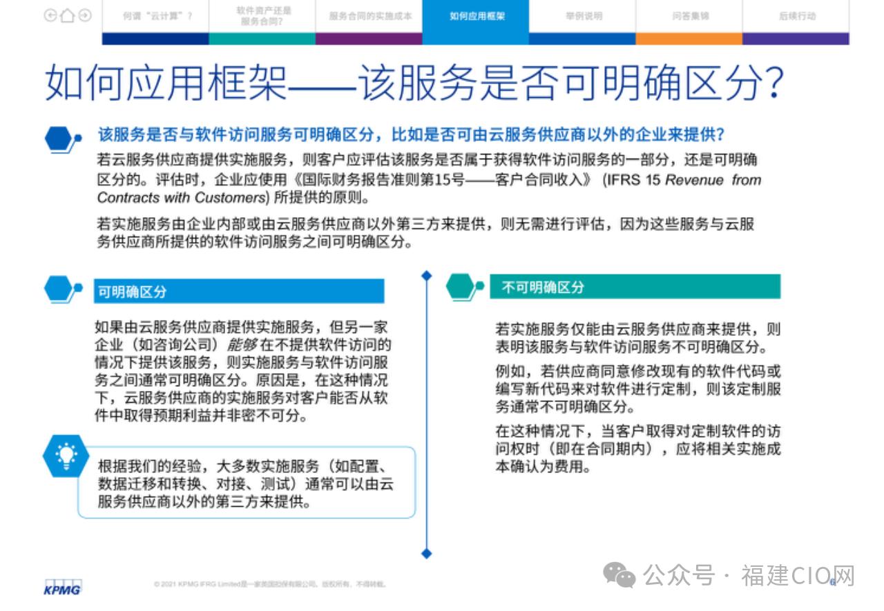 在云服務(wù)合同中,客戶應(yīng)評(píng)估實(shí)施服務(wù)與獲得軟件訪問(wèn)服務(wù)是否可明確區(qū)分。由此,某些企業(yè)可能需要改變現(xiàn)行會(huì)計(jì)政策,其損益表亦可能受到影響,因?yàn)樵品?wù)合同的很多實(shí)施成本應(yīng)在發(fā)生時(shí)予以費(fèi)用化。
