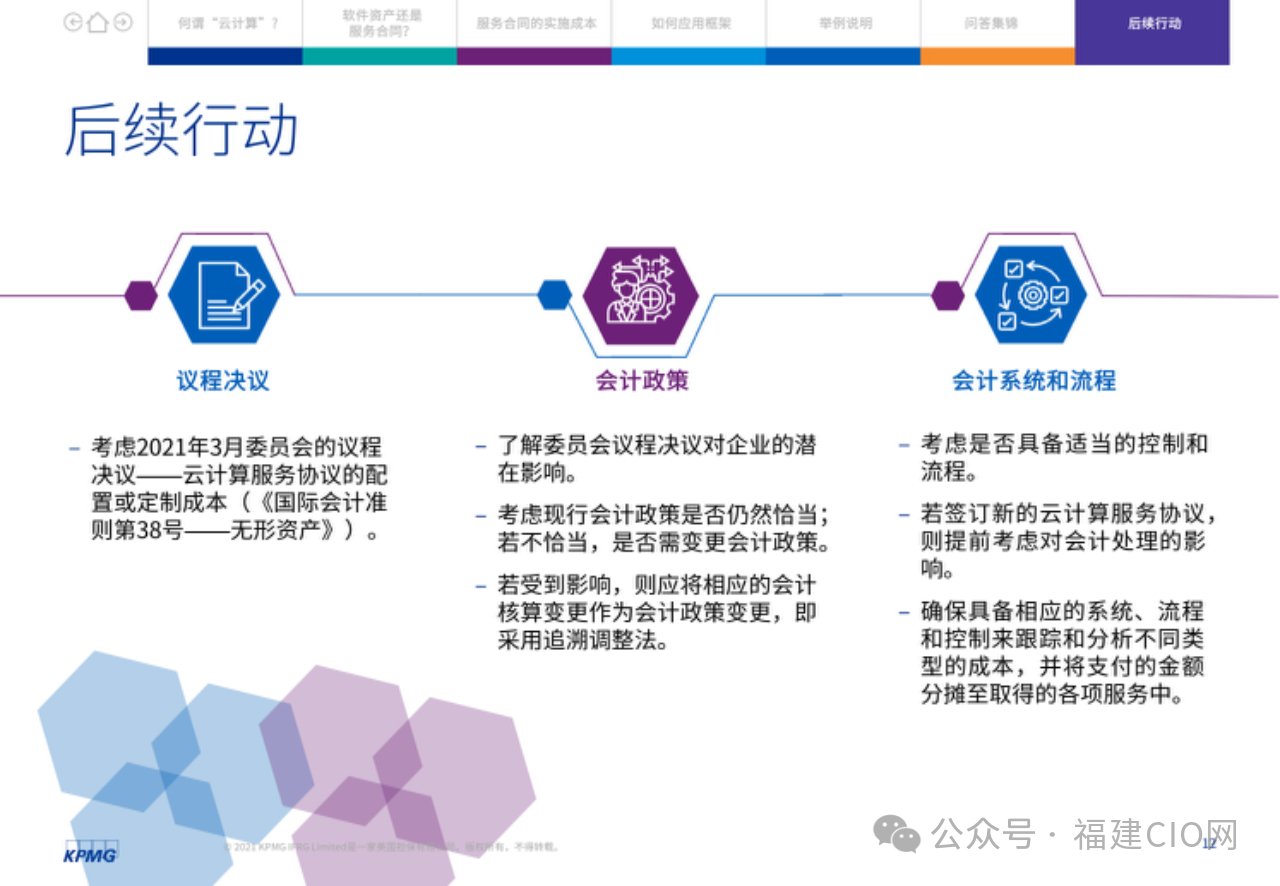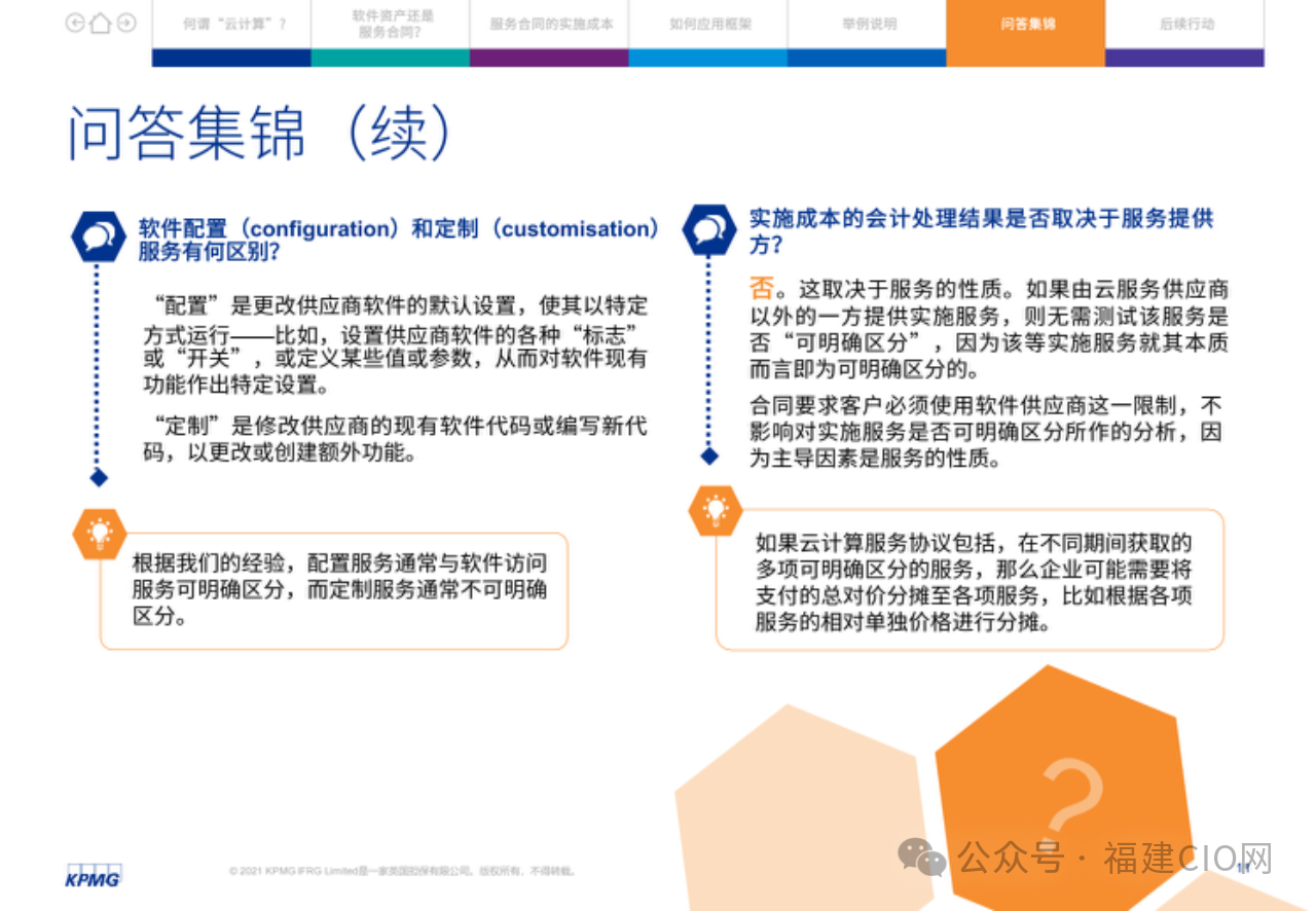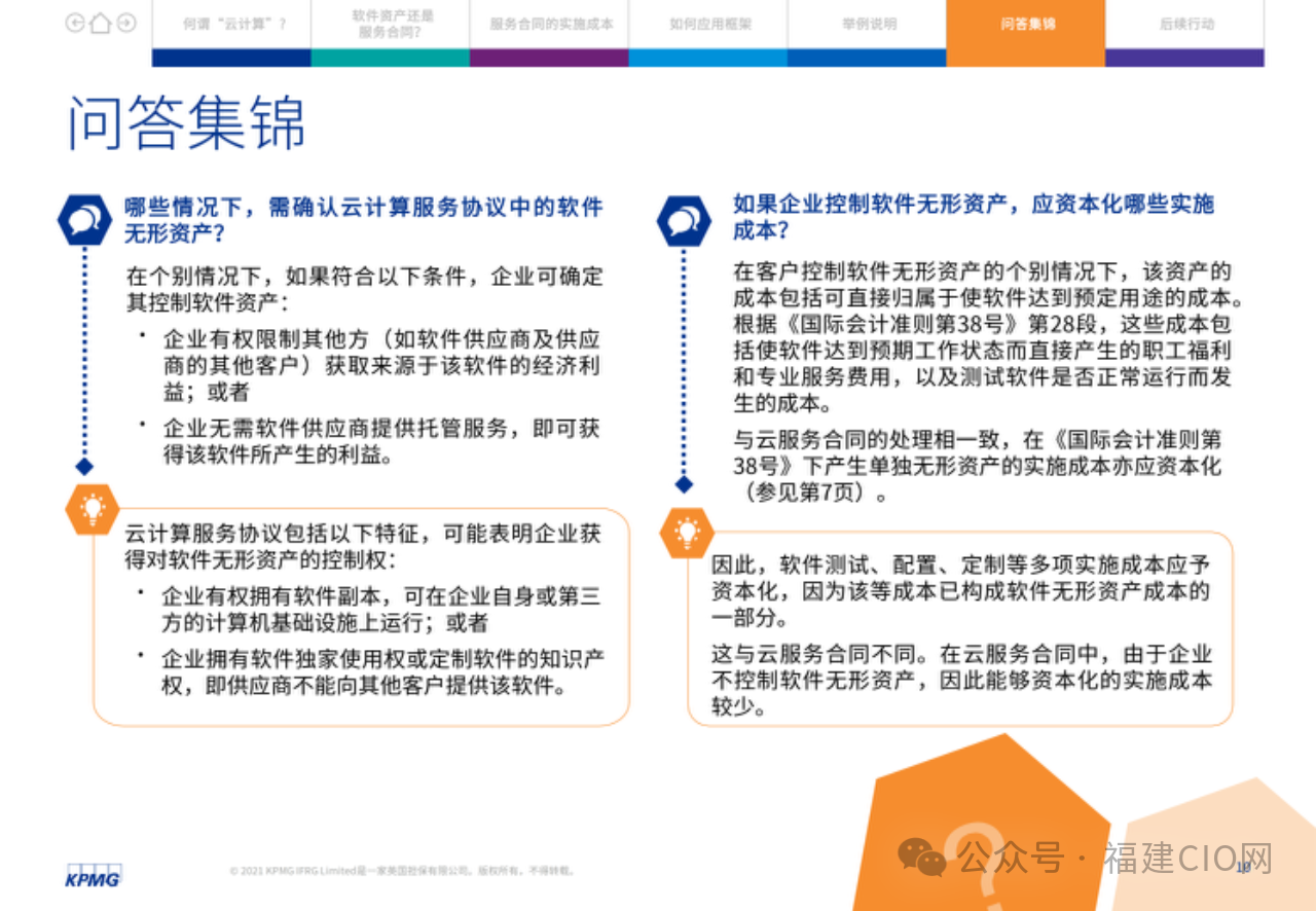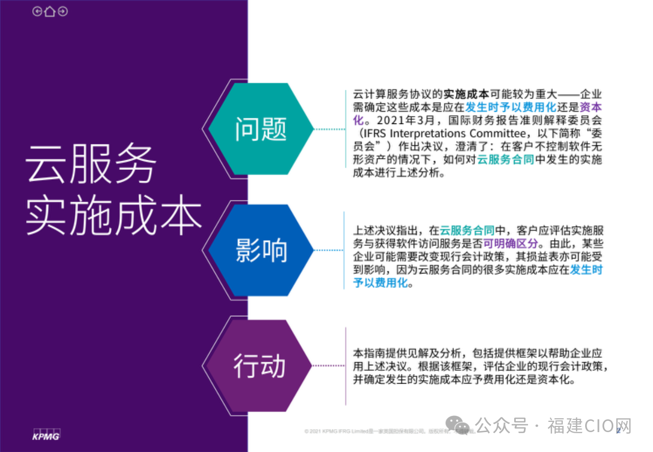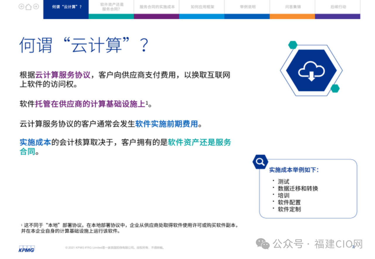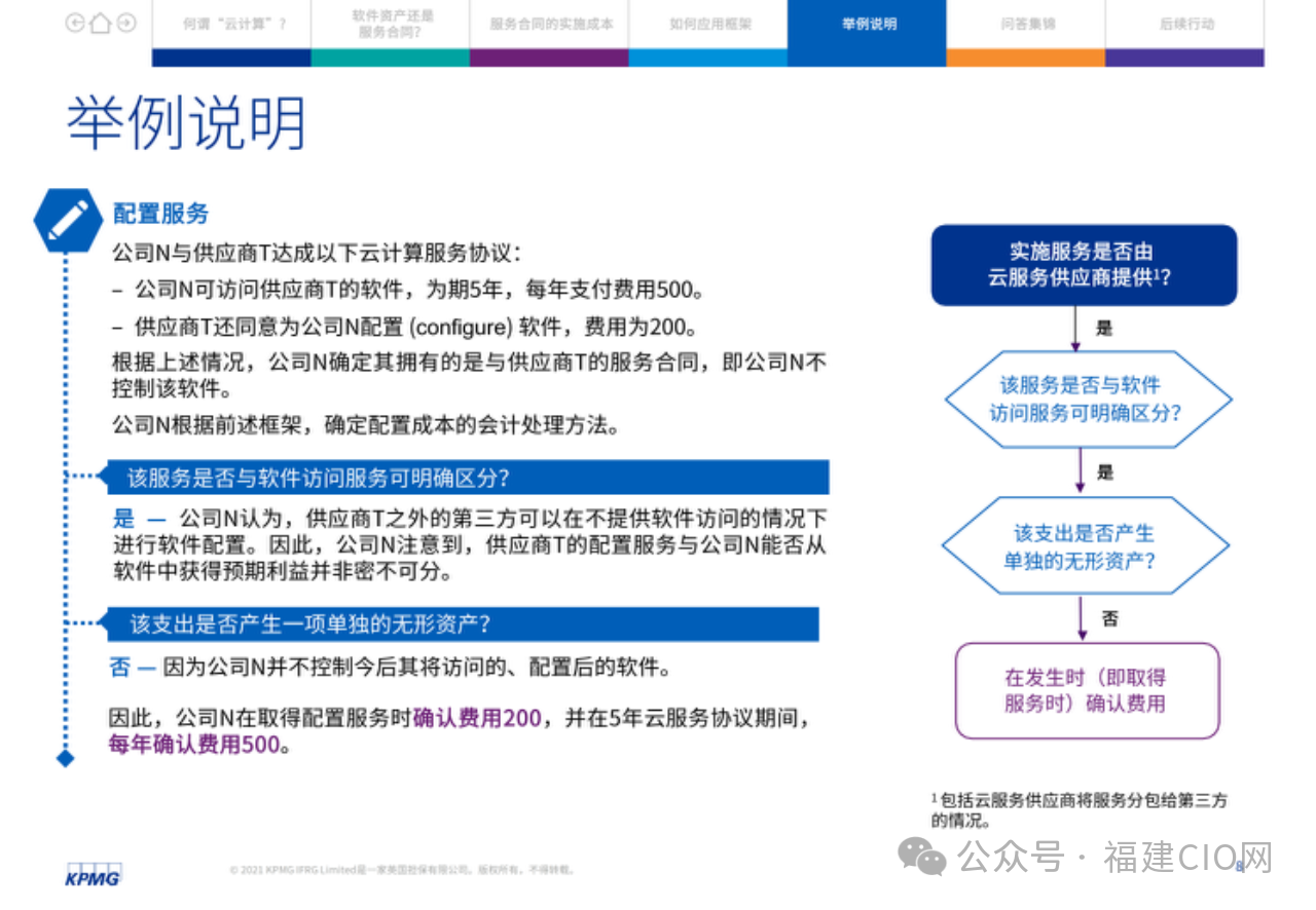 在云服務(wù)合同中,客戶應(yīng)評(píng)估實(shí)施服務(wù)與獲得軟件訪問(wèn)服務(wù)是否可明確區(qū)分。由此,某些企業(yè)可能需要改變現(xiàn)行會(huì)計(jì)政策,其損益表亦可能受到影響,因?yàn)樵品?wù)合同的很多實(shí)施成本應(yīng)在發(fā)生時(shí)予以費(fèi)用化。