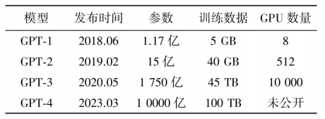 表1 GPT模型的各種數(shù)據(jù)
