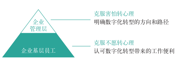 凝聚數(shù)字化轉(zhuǎn)型共識的兩個主體如圖 1 所示。中小企業(yè)的一把手需要克服害怕轉(zhuǎn)的心理,把握診斷機(jī)會,充分利用外部診斷專家資源,識別自身在企業(yè)經(jīng)營和生產(chǎn)制造環(huán)節(jié)中存在的短板弱項,制定自身數(shù)字化轉(zhuǎn)型的頂層規(guī)劃和發(fā)展路徑,為今后數(shù)字化轉(zhuǎn)型指明方向。中小企業(yè)基層員工需要克服“不愿轉(zhuǎn)”的心理,通過外部專家的智能制造知識培訓(xùn),了解到智能制造發(fā)展趨勢,認(rèn)可數(shù)字化裝備和信息化系統(tǒng)的引入能給自身帶來工作的便利,降低自己的勞動強(qiáng)度。
