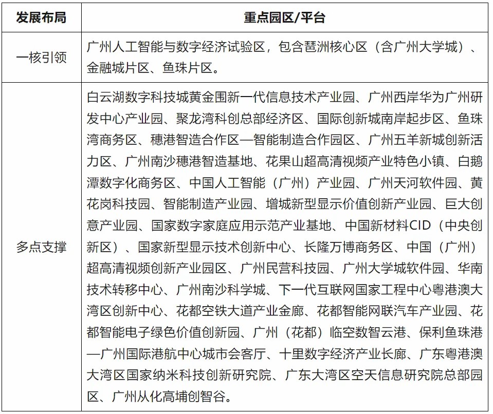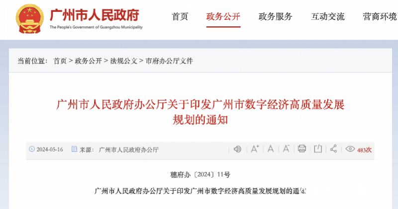 穗府辦〔2024〕11號(hào) 廣州市人民政府辦公廳關(guān)于印發(fā)廣州市數(shù)字經(jīng)濟(jì)高質(zhì)量發(fā)展規(guī)劃的通知 各區(qū)人民政府,市政府各部門、各直屬機(jī)構(gòu): 《廣州市數(shù)字經(jīng)濟(jì)高質(zhì)量發(fā)展規(guī)劃》已經(jīng)市政府同意,現(xiàn)印發(fā)給你們,請認(rèn)真組織實(shí)施。實(shí)施中遇到問題,請徑向市工業(yè)和信息化局反映。 廣州市人民政府辦公廳 2024年4月30日 廣州市數(shù)字經(jīng)濟(jì)高質(zhì)量發(fā)展規(guī)劃 數(shù)字經(jīng)濟(jì)發(fā)展速度之快、輻射范圍之廣、影響程度之深前所未有,正在成為重組全球要素資源、重塑全球經(jīng)濟(jì)結(jié)構(gòu)、改變?nèi)蚋偁幐窬值年P(guān)鍵力量。為深入貫徹落實(shí)黨中央、國務(wù)院關(guān)于發(fā)展數(shù)字經(jīng)濟(jì)的決策部署,高質(zhì)量推動(dòng)廣州數(shù)字經(jīng)濟(jì)創(chuàng)新引領(lǐng)型城市建設(shè),促進(jìn)數(shù)字經(jīng)濟(jì)和實(shí)體經(jīng)濟(jì)深度融合,構(gòu)建具有國際競爭力的現(xiàn)代化產(chǎn)業(yè)體系,探索中國式現(xiàn)代化的廣州實(shí)踐,根據(jù)《數(shù)字中國建設(shè)整體布局規(guī)劃》《“十四五”數(shù)字經(jīng)濟(jì)發(fā)展規(guī)劃》《廣州市數(shù)字經(jīng)濟(jì)促進(jìn)條例》以及《廣州市國民經(jīng)濟(jì)和社會(huì)發(fā)展第十四個(gè)五年規(guī)劃和2035年遠(yuǎn)景目標(biāo)綱要》,參照《廣州市國土空間總體規(guī)劃(2018—2035年)》等文件精神與要求,結(jié)合廣州實(shí)際,制定本規(guī)劃。本規(guī)劃基準(zhǔn)期為2022年,規(guī)劃期為2023年至2025年,遠(yuǎn)期展望到2035年。 第一章? 發(fā)展環(huán)境 一、發(fā)展基礎(chǔ) “十三五”時(shí)期以來,廣州持續(xù)推進(jìn)數(shù)字經(jīng)濟(jì)全面發(fā)展,加快數(shù)字基礎(chǔ)設(shè)施建設(shè),不斷增強(qiáng)數(shù)字創(chuàng)新能力,深入推進(jìn)數(shù)字經(jīng)濟(jì)與實(shí)體經(jīng)濟(jì)融合發(fā)展,加快產(chǎn)業(yè)數(shù)字化轉(zhuǎn)型,探索數(shù)據(jù)要素市場化路徑,數(shù)字經(jīng)濟(jì)在經(jīng)濟(jì)社會(huì)高質(zhì)量發(fā)展、加快推動(dòng)廣州高質(zhì)量實(shí)現(xiàn)老城市新活力、“四個(gè)出新出彩”中的引擎功能更加凸顯。 數(shù)字基礎(chǔ)設(shè)施底座更加堅(jiān)實(shí)。高水平推進(jìn)5G商用試點(diǎn)城市建設(shè),累計(jì)建成5G基站7.64萬座,5G用戶超1400萬戶。千兆城市建設(shè)走在全國前列,全市光纖接入端口達(dá)1397.6萬個(gè),寬帶用戶765萬戶,獲評(píng)全國首批“千兆城市”。建成華南唯一的工業(yè)互聯(lián)網(wǎng)標(biāo)識(shí)解析國家頂級(jí)節(jié)點(diǎn),累計(jì)標(biāo)識(shí)解析量123.39億次,規(guī)模居全國前列。數(shù)據(jù)中心穩(wěn)步建設(shè),全市在用數(shù)據(jù)中心70個(gè),機(jī)架規(guī)模約25.7萬個(gè),居全省第一。部署華南唯一的國際IPv6根服務(wù)器,建成廣州人工智能公共算力中心,全市智算中心規(guī)模為924P,國家超級(jí)計(jì)算廣州中心成為全球用戶數(shù)量最多、應(yīng)用范圍最廣的超算中心之一。 數(shù)字經(jīng)濟(jì)核心產(chǎn)業(yè)持續(xù)壯大。全市擁有數(shù)字經(jīng)濟(jì)相關(guān)高新技術(shù)企業(yè)6100家,規(guī)模以上數(shù)字經(jīng)濟(jì)核心企業(yè)4627家。成功打造中國軟件名城,軟件業(yè)務(wù)實(shí)現(xiàn)收入6470億元(工業(yè)和信息化部口徑),同比增長10.3%,增速位居全國主要城市前列。顯示之都建設(shè)效應(yīng)明顯,顯示面板在建產(chǎn)能全國第一。超高清視頻、智能汽車、集成電路等重點(diǎn)產(chǎn)業(yè)實(shí)現(xiàn)跨越式發(fā)展。 產(chǎn)業(yè)數(shù)字化轉(zhuǎn)型加快推進(jìn)。2850家規(guī)模以上企業(yè)開展數(shù)字化轉(zhuǎn)型,五大特色產(chǎn)業(yè)集群工業(yè)互聯(lián)網(wǎng)平臺(tái)服務(wù)企業(yè)8812家,定制家居產(chǎn)業(yè)發(fā)展世界領(lǐng)先。獲批“中國制造2025”試點(diǎn)示范城市、國家首批服務(wù)型制造示范城市、全球定制之都案例城市?;窘ǔ蓮V州“三農(nóng)”數(shù)據(jù)智庫服務(wù)平臺(tái)、粵港澳大灣區(qū)“菜籃子”平臺(tái)、種養(yǎng)殖生產(chǎn)管理智能化、“廣州農(nóng)博士”等農(nóng)業(yè)數(shù)字化服務(wù)平臺(tái)。 數(shù)字新業(yè)態(tài)新經(jīng)濟(jì)蓬勃發(fā)展。直播經(jīng)濟(jì)發(fā)展迅猛,主要電商平臺(tái)的主播數(shù)、開播場次、直播商品數(shù)均居全國第一。2022年全市限額以上實(shí)物商品網(wǎng)上零售額同比增長13.4%,增速是全國的2.2倍;跨境電商進(jìn)出口額占外貿(mào)比重達(dá)到12.6%,增速是全國的8.7倍;擁有3個(gè)國家級(jí)電商示范基地、12個(gè)省級(jí)電商示范基地;在線學(xué)習(xí)、遠(yuǎn)程會(huì)議、在線醫(yī)療等廣泛開展,有力促進(jìn)廣州國家消費(fèi)中心城市建設(shè)。 數(shù)字經(jīng)濟(jì)集聚效應(yīng)凸顯。廣州作為國家新一代人工智能創(chuàng)新發(fā)展試驗(yàn)區(qū)、國家人工智能創(chuàng)新應(yīng)用先導(dǎo)區(qū)、國家數(shù)字經(jīng)濟(jì)創(chuàng)新發(fā)展試驗(yàn)區(qū),數(shù)字經(jīng)濟(jì)規(guī)模初步形成