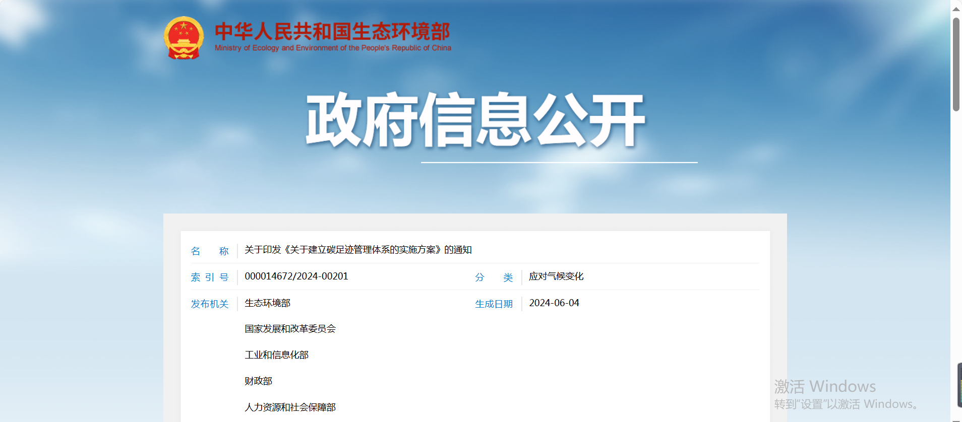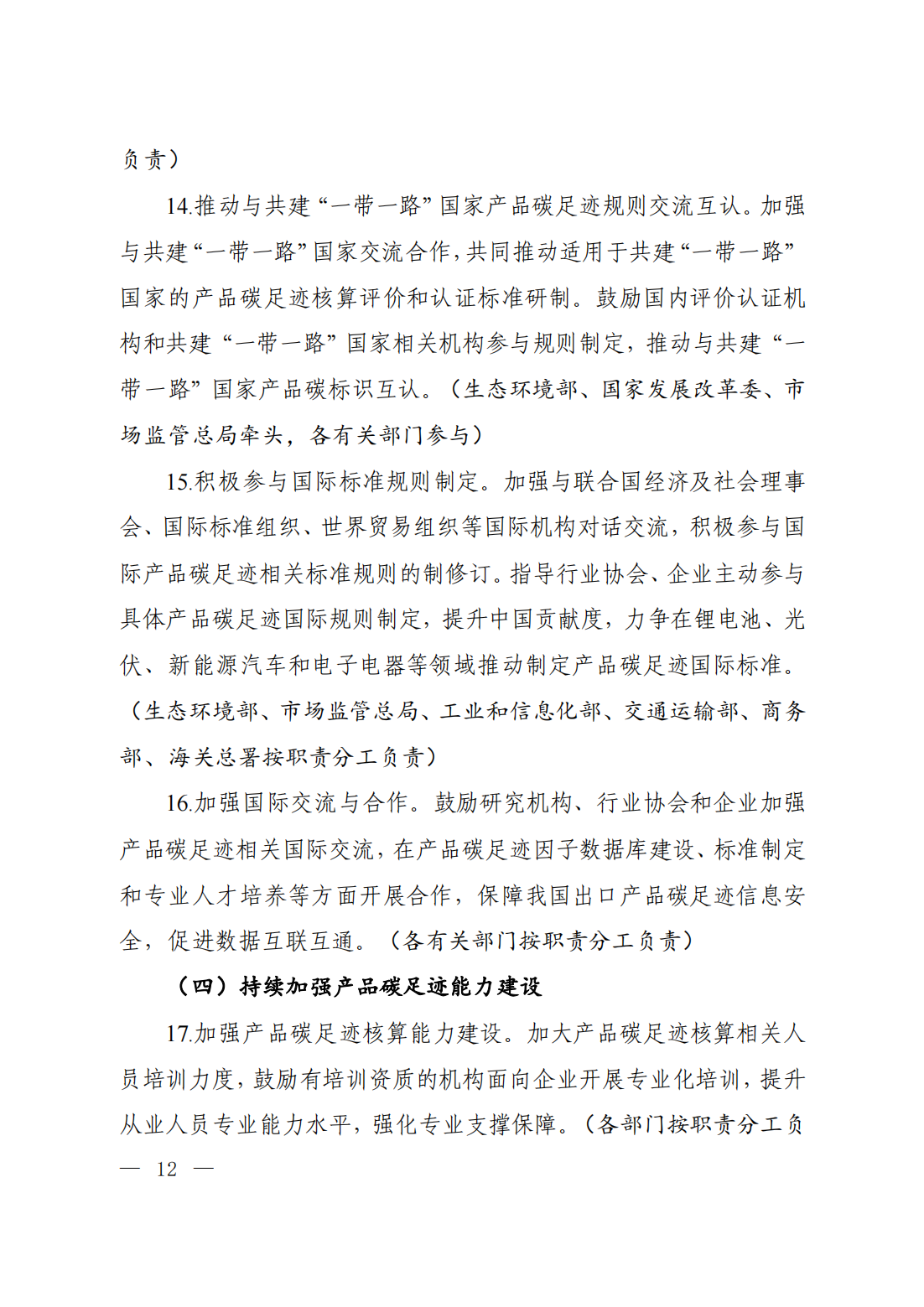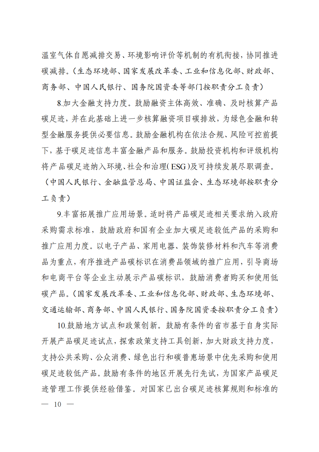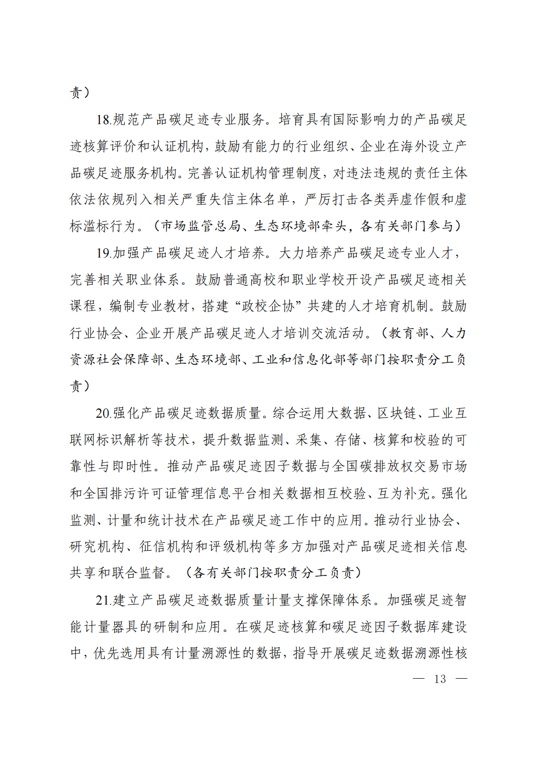 通知原文如下 關(guān)于印發(fā)《關(guān)于建立碳足跡管理體系的實(shí)施方案》的通知 環(huán)氣候〔2024〕30號 各省、自治區(qū)、直轄市及新疆生產(chǎn)建設(shè)兵團(tuán)生態(tài)環(huán)境廳(局)、發(fā)展改革委、工業(yè)和信息化主管部門、財(cái)政廳(局)、人力資源社會保障廳(局)、住房城鄉(xiāng)建設(shè)廳(委、管委、局)、交通運(yùn)輸廳(局、委)、商務(wù)主管部門、國資委、市場監(jiān)管局(廳、委)、數(shù)據(jù)管理部門;中國人民銀行上海總部,各省、自治區(qū)、直轄市及計(jì)劃單列市分行;海關(guān)總署廣東分署、各直屬海關(guān);國家金融監(jiān)督管理總局各監(jiān)管局;中國證券監(jiān)督管理委員會各證監(jiān)局: 為深入貫徹落實(shí)《中共中央 國務(wù)院關(guān)于全面推進(jìn)美麗中國建設(shè)的意見》《中共中央 國務(wù)院關(guān)于完整準(zhǔn)確全面貫徹新發(fā)展理念做好碳達(dá)峰碳中和工作的意見》和《2030年前碳達(dá)峰行動方案》部署要求,加快建立碳足跡管理體系,形成綠色低碳供應(yīng)鏈和生產(chǎn)生活方式,推動新質(zhì)生產(chǎn)力發(fā)展,助力實(shí)現(xiàn)碳達(dá)峰碳中和目標(biāo),生態(tài)環(huán)境部會同國家發(fā)展改革委、工業(yè)和信息化部、財(cái)政部、人力資源社會保障部、住房城鄉(xiāng)建設(shè)部、交通運(yùn)輸部、商務(wù)部、中國人民銀行、國務(wù)院國資委、海關(guān)總署、市場監(jiān)管總局、金融監(jiān)管總局、中國證監(jiān)會、國家數(shù)據(jù)局制定了《關(guān)于建立碳足跡管理體系的實(shí)施方案》?,F(xiàn)印發(fā)給你們,請認(rèn)真抓好落實(shí)。 附件下載: 生態(tài)環(huán)境部 國家發(fā)展改革委 工業(yè)和信息化部 財(cái)政部 人力資源社會保障部 住房城鄉(xiāng)建設(shè)部 交通運(yùn)輸部 商務(wù)部 中國人民銀行 國務(wù)院國資委 海關(guān)總署 市場監(jiān)管總局 金融監(jiān)管總局 中國證監(jiān)會 國家數(shù)據(jù)局 2024年5月22日