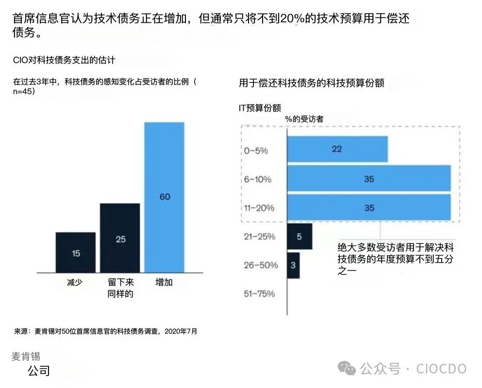 數(shù)據(jù)來源于麥肯錫在2020年7月對50位首席信息官(CIO)進行的技術債務調研。