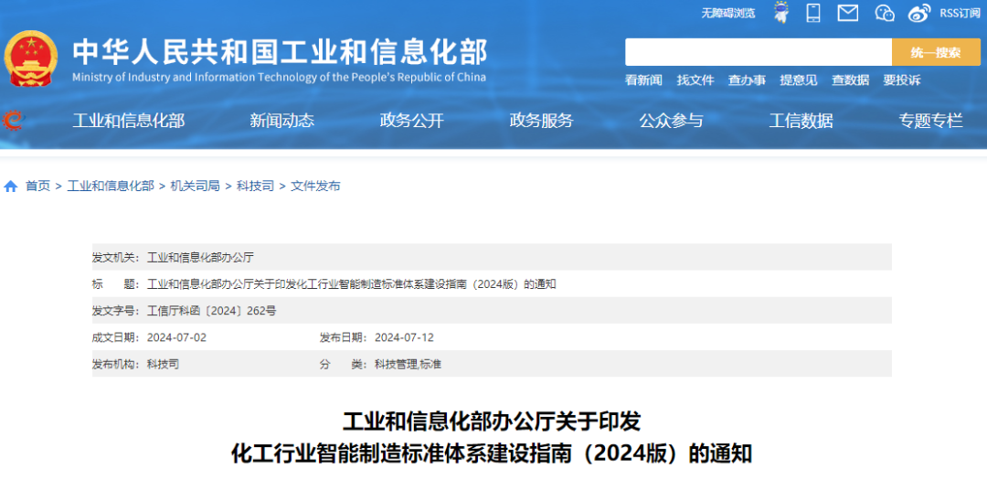 7月12日,工業(yè)和信息化部印發(fā)《化工行業(yè)智能制造標(biāo)準(zhǔn)體系建設(shè)指南(2024版)》(下稱《指南》),明確了當(dāng)前和未來一段時(shí)間化工行業(yè)智能制造標(biāo)準(zhǔn)化工作方向,以促進(jìn)化工行業(yè)與新一代信息技術(shù)在更廣范圍、更深程度、更高水平上實(shí)現(xiàn)融合發(fā)展,推動(dòng)化工行業(yè)由傳統(tǒng)生產(chǎn)方式向智能制造轉(zhuǎn)型升級(jí)。