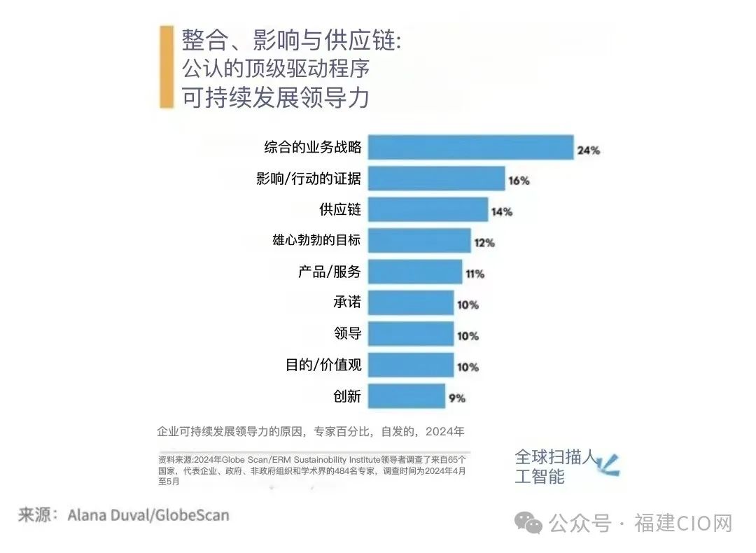 根據(jù)GlobeScan/ERM?調(diào)查,融入可持續(xù)發(fā)展、展現(xiàn)切實影響和解決供應(yīng)鏈問題是企業(yè)被認(rèn)定為可持續(xù)發(fā)展領(lǐng)導(dǎo)者的首要標(biāo)準(zhǔn)。