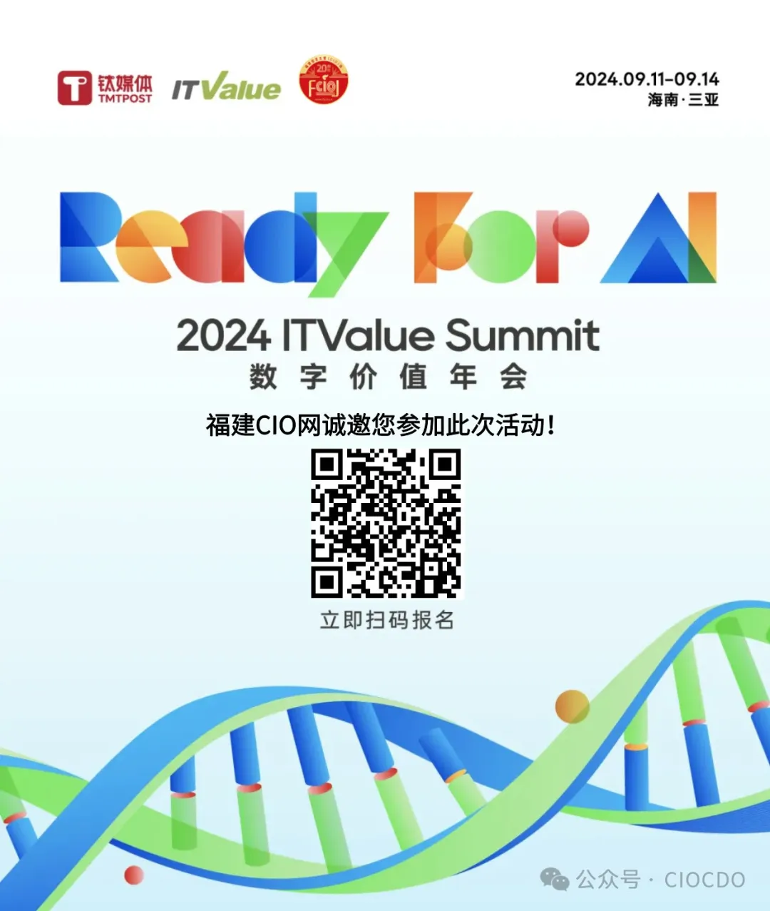 福建信息主管(CIO)網(wǎng)作為支持單位邀請您參加2024數(shù)字價值年會,(主題:“Ready For AI”),與新老朋友重聚三亞,交流經(jīng)驗教訓,交叉行業(yè)思考,推動創(chuàng)新交易,以創(chuàng)新場景為基礎,共同探索AI驅動下數(shù)字經(jīng)濟時代的全新機遇,共同打造一場數(shù)字經(jīng)濟時代的AI創(chuàng)新探索盛宴。