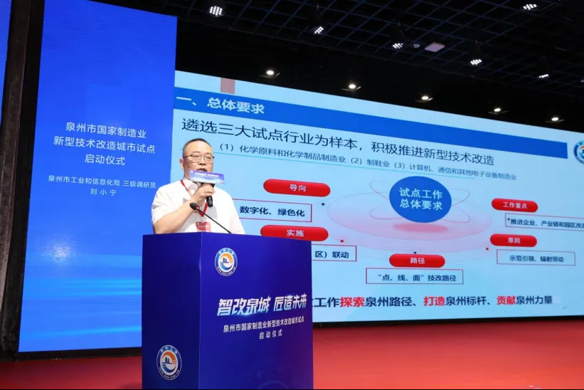 啟動儀式上,市工信局從總體要求、實施路徑、工作目標(biāo)、重點任務(wù)、工作推進、保障措施等六個方向分享了泉州市制造業(yè)新型技術(shù)改造城市試點創(chuàng)新機制。精心遴選三大試點行業(yè)為樣本,以高端化、數(shù)字化、綠色化為導(dǎo)向,市級統(tǒng)籌、縣(市、區(qū))聯(lián)動,通過“點、線、面”技改路徑,用示范引領(lǐng)、輻射帶動,推進企業(yè)、產(chǎn)業(yè)鏈和園區(qū)改造。