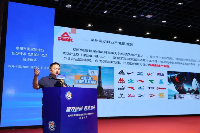 匹克(中國)有限公司作為“鏈主”企業(yè),CEO許志華分享了“產(chǎn)業(yè)鏈上下游協(xié)同改造,助推鞋產(chǎn)業(yè)高質(zhì)量發(fā)展”主題。近年來,以數(shù)字化轉(zhuǎn)型、綠色化升級為重點,制鞋業(yè)持續(xù)向高端化、智能化、綠色化方向發(fā)展,加快培育新質(zhì)生產(chǎn)力。許志華介紹了泉州制鞋業(yè)產(chǎn)業(yè)鏈數(shù)智化協(xié)同升級改造項目?!绊椖恳云タ藶殒溨鳎?lián)合10家企業(yè)協(xié)同技術(shù)改造提升。”他介紹,項目主要以車間數(shù)字化、智能化應(yīng)用;智能柔性成型生產(chǎn)線;現(xiàn)代物流中心倉庫,滿足新型零售需求;3D打印增材制造,加速鞋業(yè)技術(shù)變革;通過信息化手段應(yīng)用,建立全面、集成、先進和穩(wěn)定MES智造系統(tǒng);AI應(yīng)用等方向。