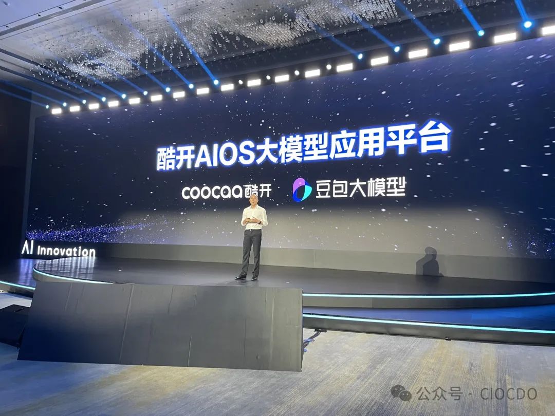 這個就極大解決了我們用戶的問題。所以我們將不同的服務(wù)從長視頻、短視頻,包括應(yīng)用的推薦,包括我們的歌曲的分發(fā),將所有的信息服務(wù)呈現(xiàn)在我們這個桌面上。每個人的喜好都不一樣,那就是每個人的桌面都不一樣,這就是我們大屏領(lǐng)域的參與情況。再就是說我們即將帶給大家全新的我們酷開的AIOS, 也是我們跟豆包大模型合作發(fā)布的行業(yè)首款的一個大模型的應(yīng)用平臺。