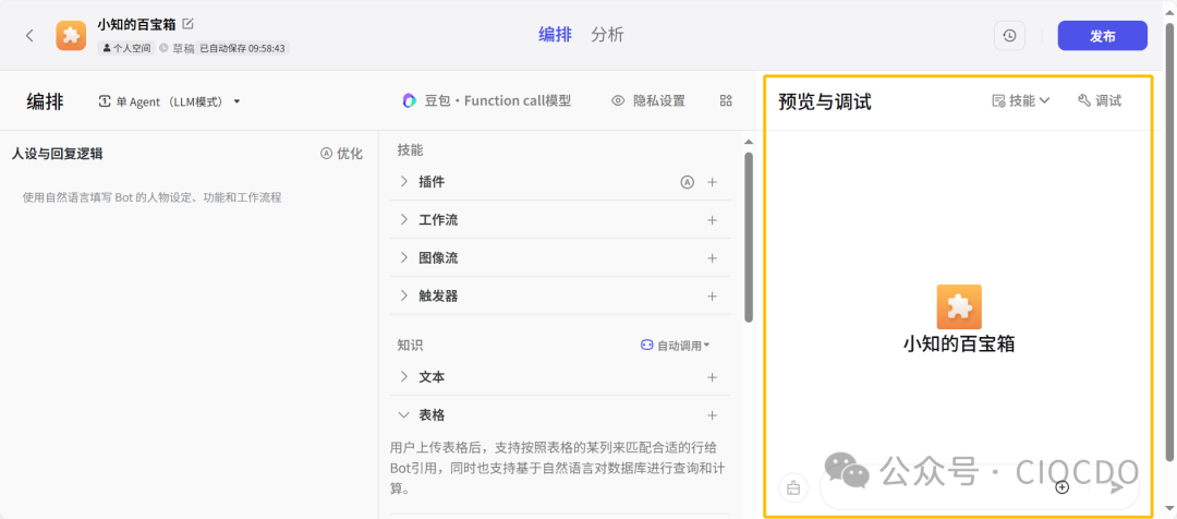 扣子/coze是新一代一站式AI Bot開發(fā)平臺(tái),它內(nèi)置了豐富的工具和插件,支持開發(fā)者無需復(fù)雜編程即可快速搭建基于AI模型的各類問答B(yǎng)ot。無論你的博客是面向技術(shù)愛好者還是普通讀者,扣子/coze都能幫助你構(gòu)建出符合需求的智能知識(shí)庫(kù)。