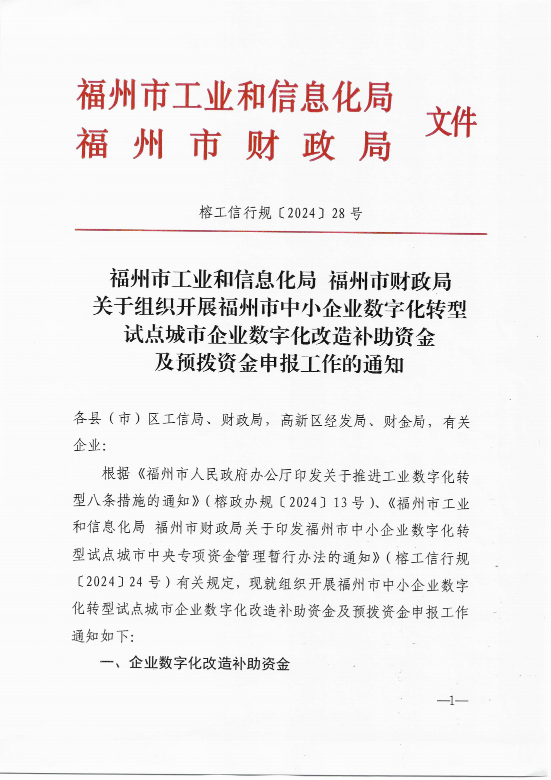 福州市工業(yè)和信息化局 福州市財政局關于組織開展福州市中小企業(yè)數(shù)字化轉(zhuǎn)型試點城市企業(yè)數(shù)字化改造補助資金及預撥資金申報工作的通知