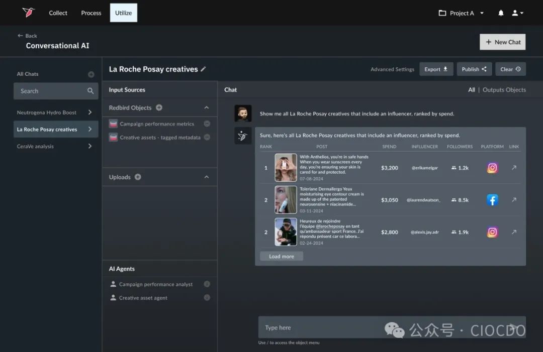 圖示:Redbird Platform Screenshot?–?AI Chat (Marketing Analytics)/Redbird平臺(tái)截圖-人工智能聊天(營(yíng)銷分析)
