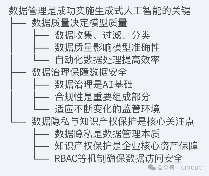 成功實(shí)施生成式人工智能需要建立一套完善的數(shù)據(jù)管理體系,涵蓋數(shù)據(jù)收集、處理、治理、安全和隱私等多個(gè)方面。只有這樣,才能充分發(fā)揮人工智能的潛力,同時(shí)避免潛在的風(fēng)險(xiǎn)。】