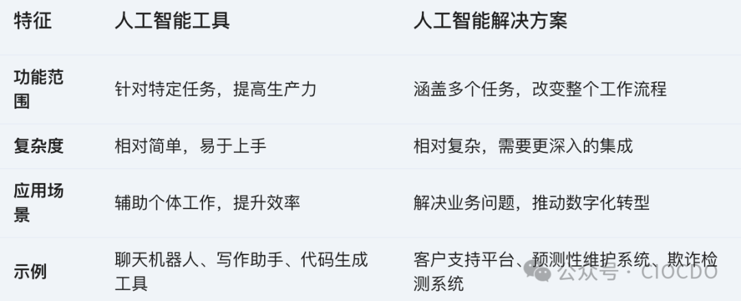 人工智能工具與解決方案的區(qū)別: