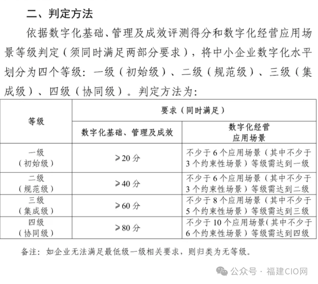 數(shù)字化成熟度:評(píng)估企業(yè)的數(shù)字化成熟度可以幫助了解企業(yè)在數(shù)字化轉(zhuǎn)型過程中的整體水平。我國(guó)中小企業(yè)數(shù)字化水平可以分為初始級(jí)階段、規(guī)范級(jí)、集成級(jí)、協(xié)同級(jí)四個(gè)發(fā)展階段,每個(gè)階段都有不同的判定方法或標(biāo)準(zhǔn)。工信部發(fā)布《中小企業(yè)數(shù)字化水平評(píng)測(cè)指標(biāo)(2024年版)》