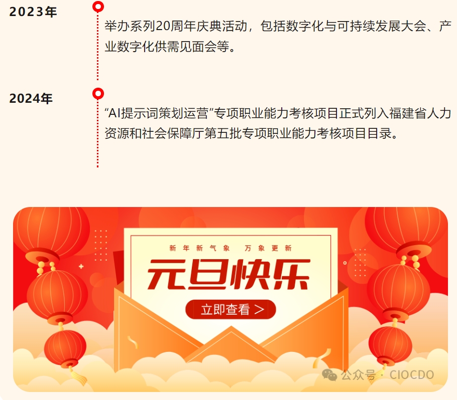 堅持“引領(lǐng)管理創(chuàng)新”的使命:?我們加強創(chuàng)新投入,探索新的服務(wù)模式和方法論,并與行業(yè)協(xié)會、企業(yè)方合作,共同探索新型工業(yè)化背景下的大模型人工智能(AI)應(yīng)用型數(shù)字化人才的培訓與實踐?!癆I提示詞策劃運營”專項職業(yè)能力考核項目正式列入福建省第五批專項職業(yè)能力考核目錄,是我們在AI引領(lǐng)管理創(chuàng)新方面的重要成果。
