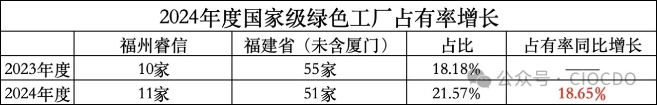 1.福州睿信企業(yè)管理咨詢有限公司2023-2024年度福建省(未含廈門)的國家級綠色工廠占比分別為:2023年度為18.18%,2024年度為21.57%。增長:占比增加了3.39個百分點,這表明福州睿信企業(yè)管理咨詢有限公司服務(wù)的國家級綠色工廠在福建?。ú缓瑥B門)的國家級綠色工廠中所占比例有所提升。