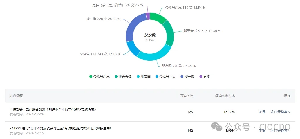 本年度,我們緊跟行業(yè)熱點,緊密圍繞公司“睿智觀天下,信任贏未來”的戰(zhàn)略愿景,在福建CIO網(wǎng)、CIOCDO公眾號推出了一系列具有原創(chuàng)性的CIO領(lǐng)導力、AI前沿趨勢、網(wǎng)絡(luò)安全與數(shù)據(jù)治理、ESG與綠色低碳可持續(xù)發(fā)展等熱點文章內(nèi)容。CIOCDO公眾號全年共發(fā)表原創(chuàng)文章656篇,總閱讀量達到25689次。