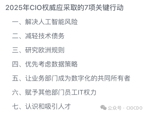 PWC在其對(duì)?2025?年?CIO?行動(dòng)的指導(dǎo)中強(qiáng)調(diào),CIO?的工作是“傳播創(chuàng)新并影響業(yè)務(wù)決策”。