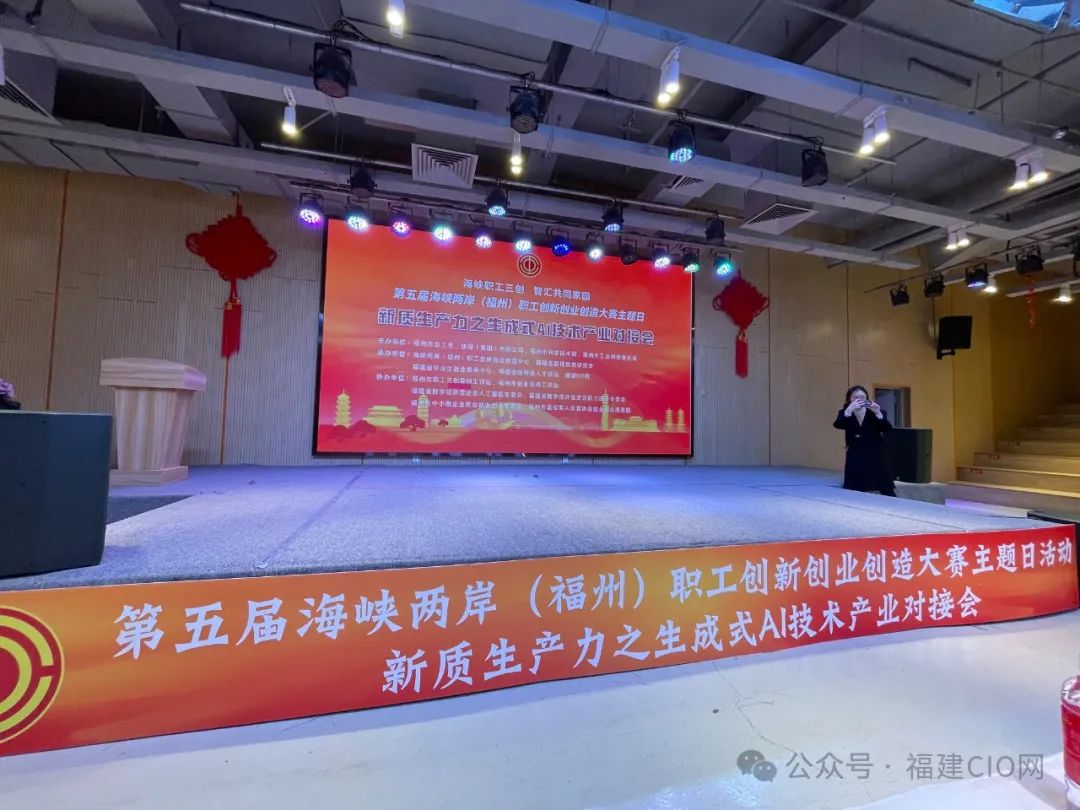 2025年1月20日,福州市總工會(huì)與相關(guān)單位在福州舉辦“第五屆海峽兩巖(福州)職工創(chuàng)新創(chuàng)業(yè)創(chuàng)造大賽主題日活動(dòng)——新質(zhì)生產(chǎn)力之生成式AI技術(shù)產(chǎn)業(yè)對(duì)接會(huì)”。