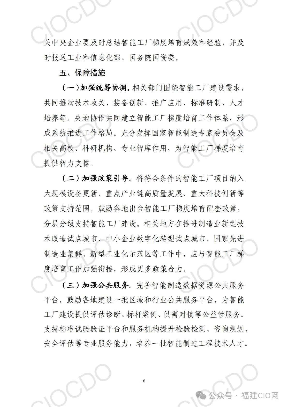 5. 各地工業(yè)和信息化、發(fā)展改革、財(cái)政、國資、市場(chǎng)監(jiān)管、數(shù)據(jù)主管部門,有關(guān)中央企業(yè)應(yīng)加強(qiáng)對(duì)智能工廠的分級(jí)指導(dǎo)和監(jiān)督,鼓勵(lì)給予相應(yīng)政策支持。