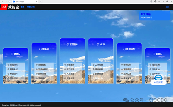 ②拿來就可用的專業(yè)專家調(diào)優(yōu)研制的職場智能體集APP“AI效能寶”,讓營銷、管理者、人力資源管理、培訓(xùn)師、財務(wù)管理、職能管理等打工人馬上更精準(zhǔn)地提升工作質(zhì)量和效能: