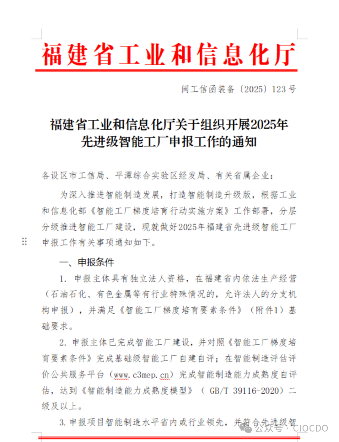 2.申報(bào)主體已完成智能工廠建設(shè),并對(duì)照《智能工廠梯度培育要素條件》完成基礎(chǔ)級(jí)智能工廠自建自評(píng);在智能制造評(píng)估評(píng)價(jià)公共服務(wù)平臺(tái)(www.c3mep.cn)完成智能制造能力成熟度自評(píng)估,達(dá)到《智能制造能力成熟度模型》( GB/T 39116-2020)二級(jí)及以上。