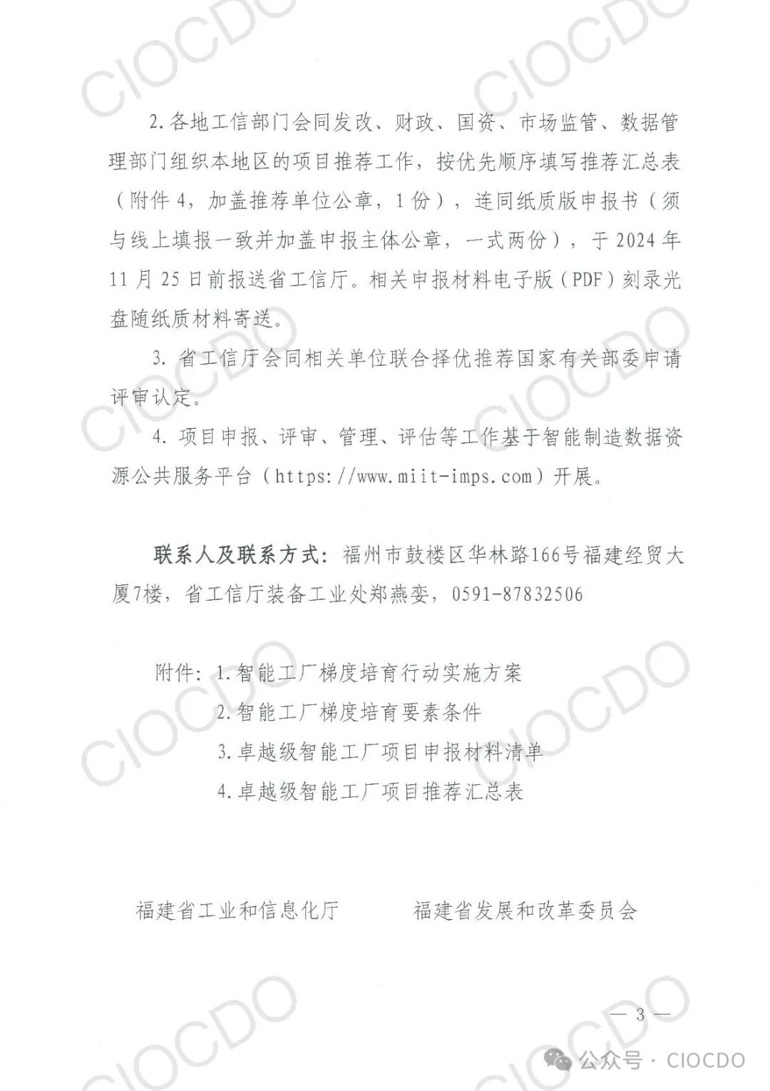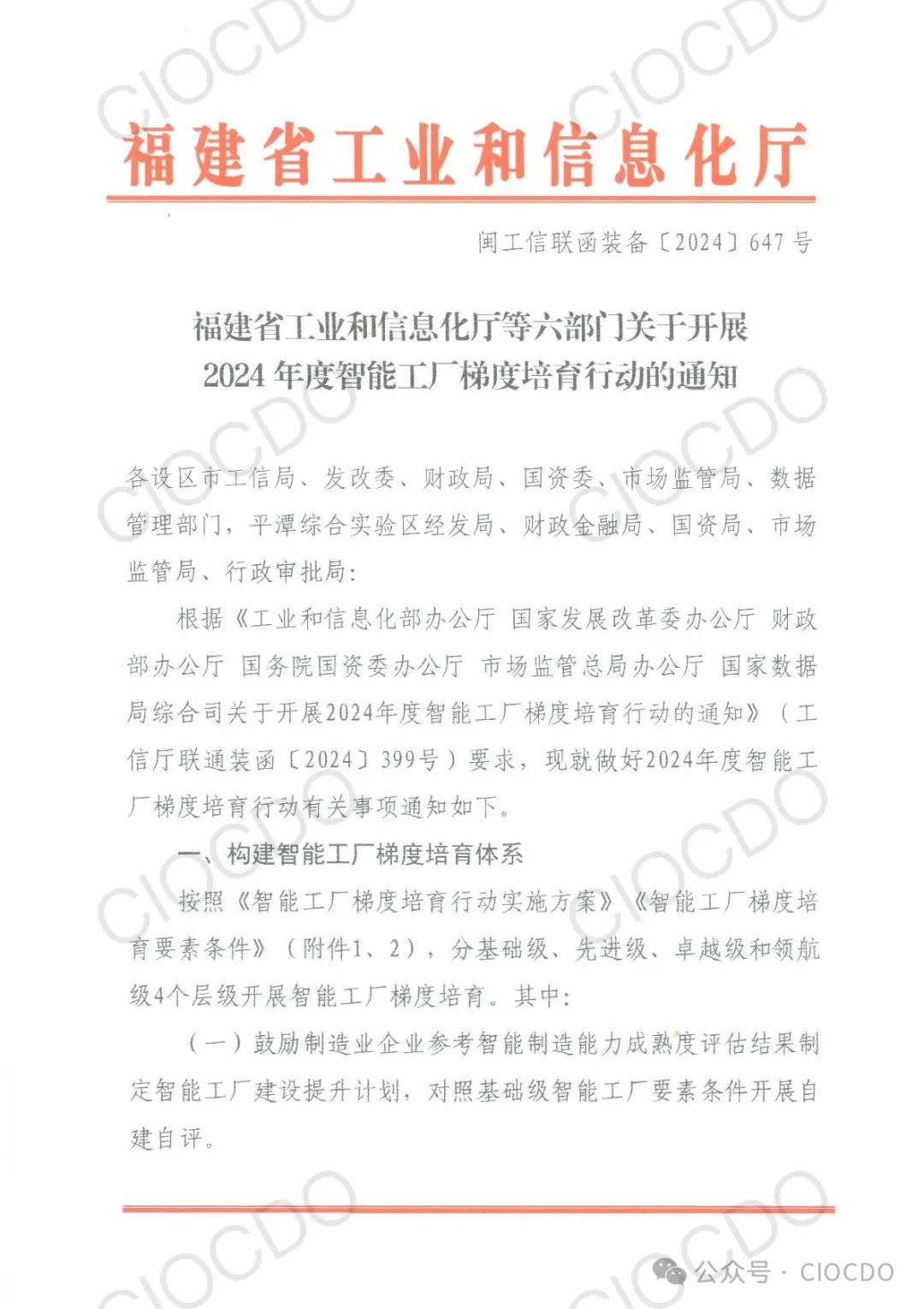 根據(jù)《工業(yè)和信息化部辦公廳 國(guó)家發(fā)展改革委辦公廳 財(cái)政部辦公廳 國(guó)務(wù)院國(guó)資委辦公廳 市場(chǎng)監(jiān)管總局辦公廳 國(guó)家數(shù)據(jù)局綜合司關(guān)于開(kāi)展2024年度智能工廠梯度培育行動(dòng)的通知》(工信廳聯(lián)通裝函〔2024〕399號(hào))要求,現(xiàn)就做好2024年度智能工廠梯度培育行動(dòng)有關(guān)事項(xiàng)通知如下。