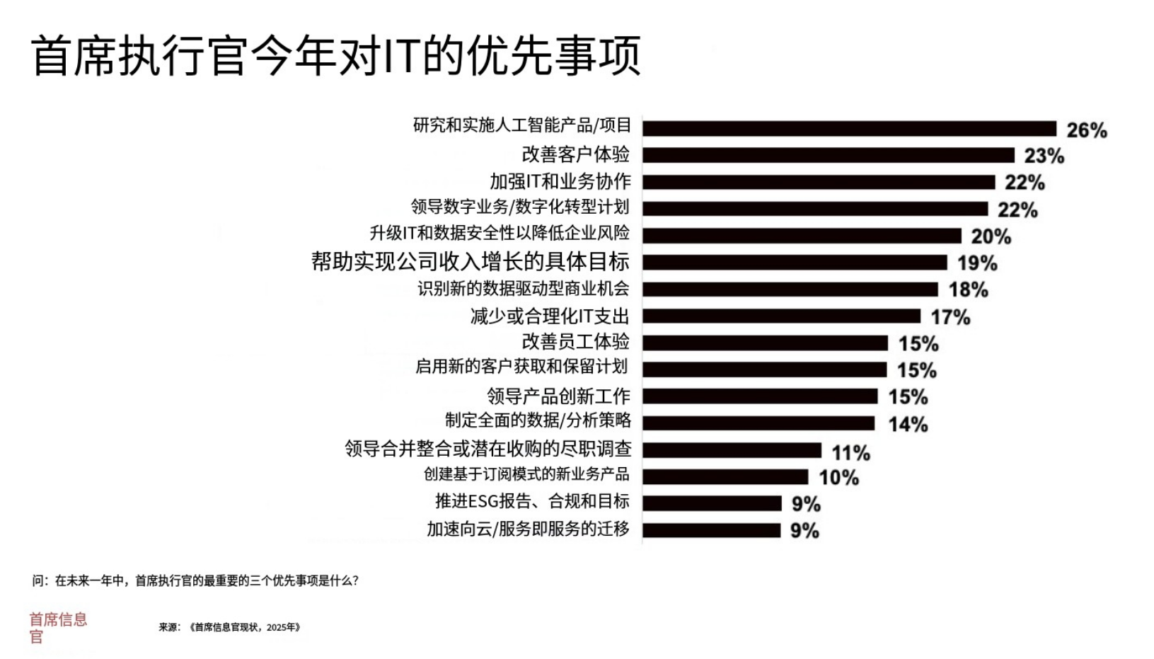 盡管AI是焦點(diǎn),CIO的議程依然廣泛,包括數(shù)據(jù)資產(chǎn)變現(xiàn)、客戶體驗(yàn)、網(wǎng)絡(luò)安全、合規(guī)性及IT基礎(chǔ)設(shè)施現(xiàn)代化等多重職責(zé)。