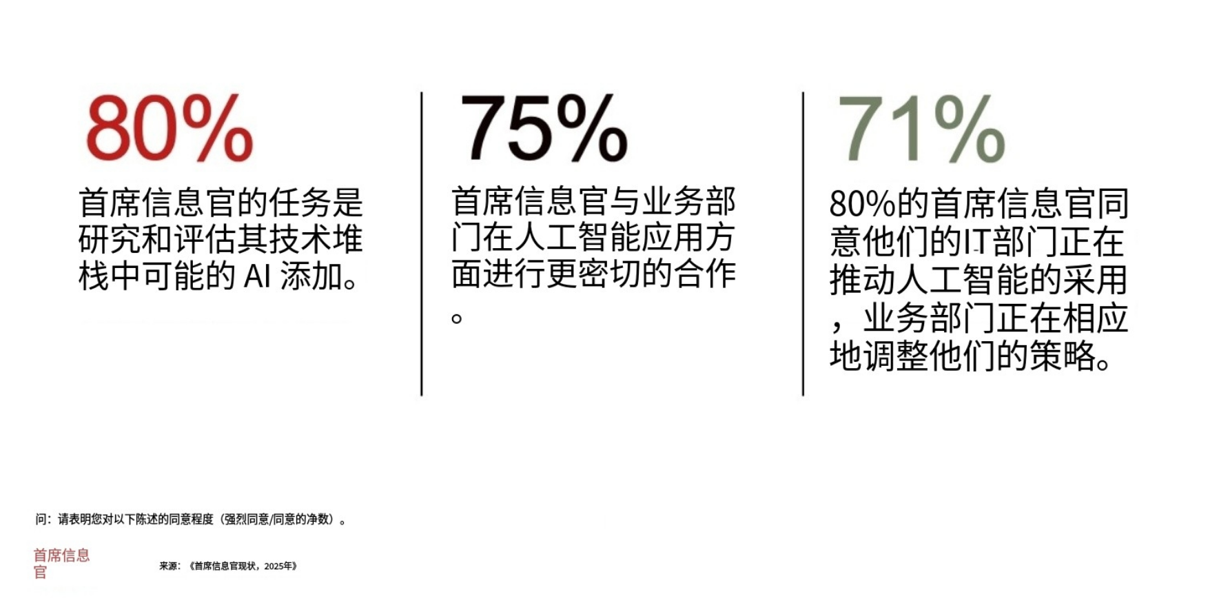 【睿觀:隨著AI技術(shù)的深入發(fā)展,CIO不再僅僅是技術(shù)專家,而是轉(zhuǎn)變?yōu)榫邆鋺?zhàn)略思維、能夠促進(jìn)跨部門協(xié)作、并推動(dòng)組織變革的關(guān)鍵商業(yè)領(lǐng)袖。他們負(fù)責(zé)規(guī)劃AI的戰(zhàn)略方向,推動(dòng)AI技術(shù)的實(shí)際應(yīng)用以創(chuàng)造商業(yè)價(jià)值,同時(shí)平衡多方需求和挑戰(zhàn),其在企業(yè)中的戰(zhàn)略地位和影響力也隨之顯著提升。
