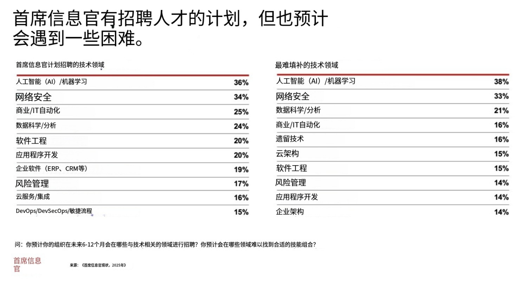 AI等領(lǐng)域的人才短缺是CIO在推動(dòng)戰(zhàn)略目標(biāo)時(shí)面臨的主要障礙,盡管IT預(yù)算普遍保持強(qiáng)勁增長(zhǎng)。