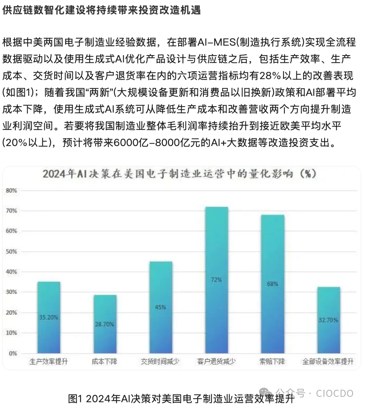 近期,商務(wù)部等8部門發(fā)布《加快數(shù)智供應(yīng)鏈發(fā)展專項行動計劃》,旨在推動供應(yīng)鏈的數(shù)字化、智能化和可視化改造,以提升產(chǎn)業(yè)鏈供應(yīng)鏈的韌性和安全水平。預(yù)計我國供應(yīng)鏈數(shù)智化將沿著提升制造業(yè)全面優(yōu)勢路徑推進,帶來上萬億元的持續(xù)投資改造機遇。