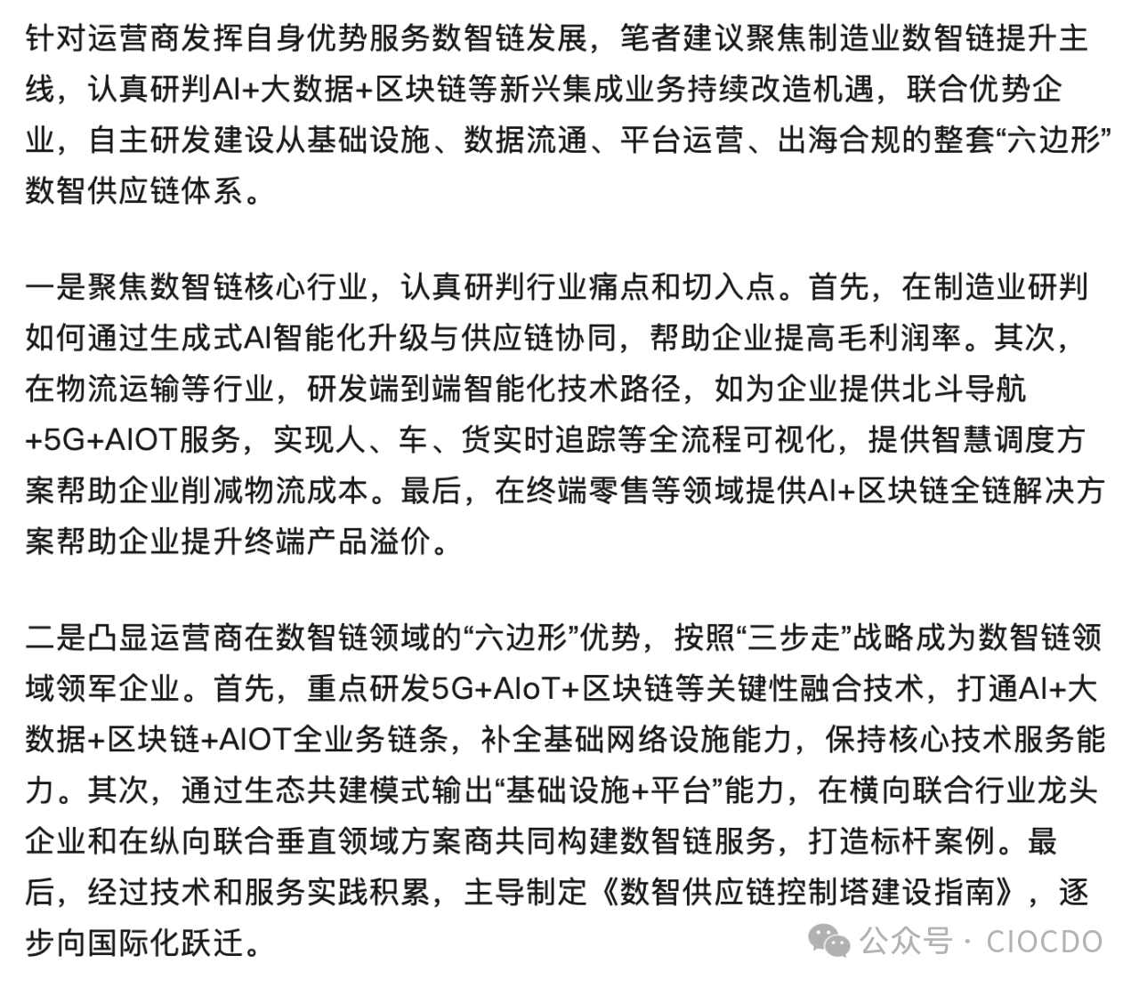 發(fā)揮運營商在數(shù)智鏈服務(wù)領(lǐng)域的天然基礎(chǔ)優(yōu)勢