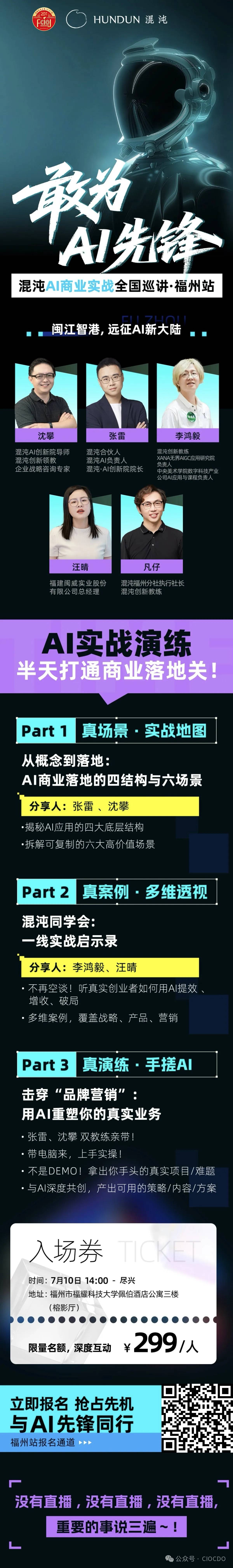 “混沌AI商業(yè)實(shí)戰(zhàn)全國巡講·福州站”活動(dòng)海報(bào)及報(bào)名二維碼,咨詢電話:小林 152 8016 9025?