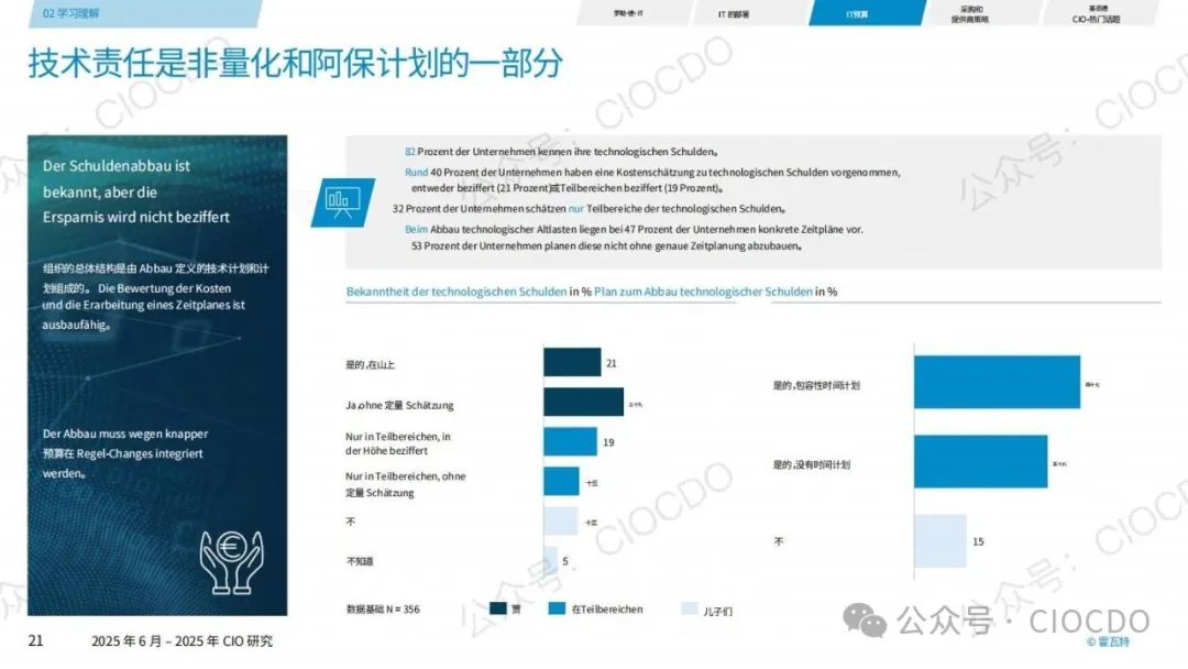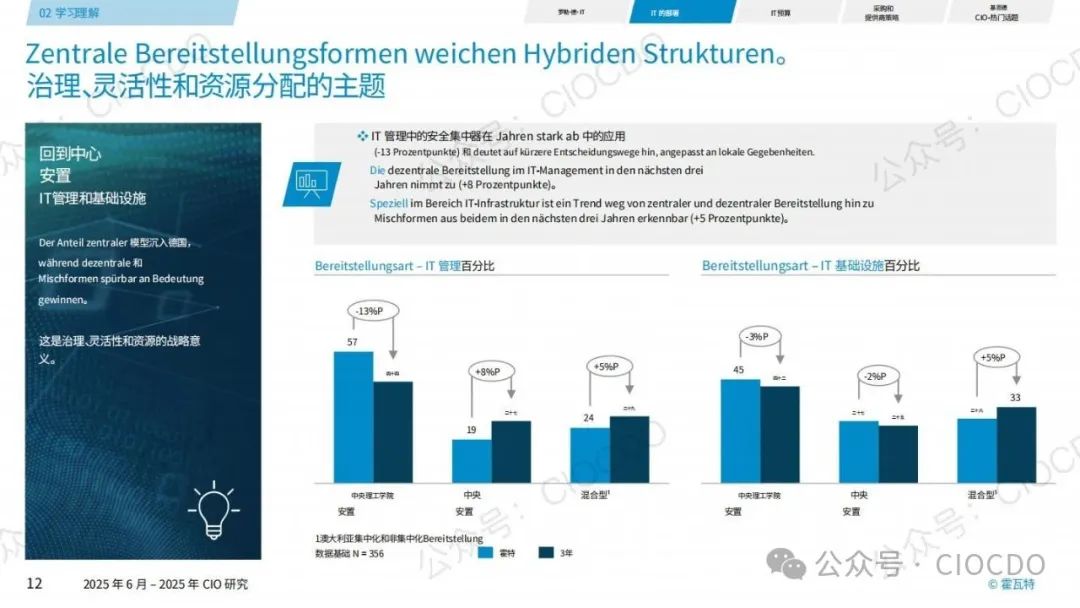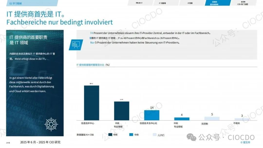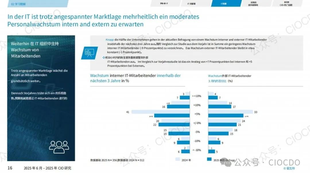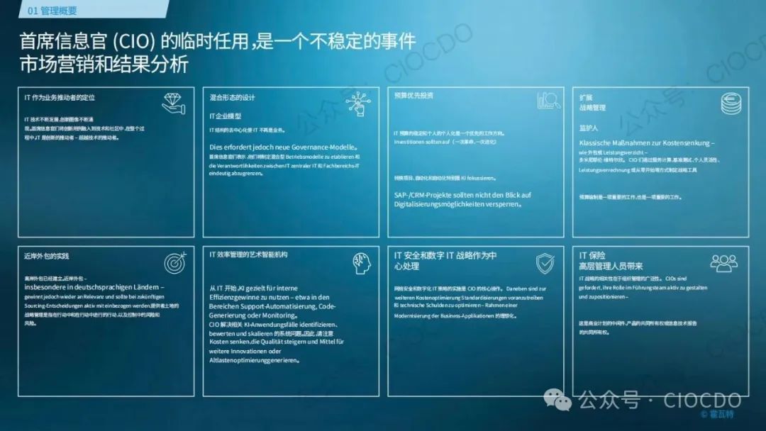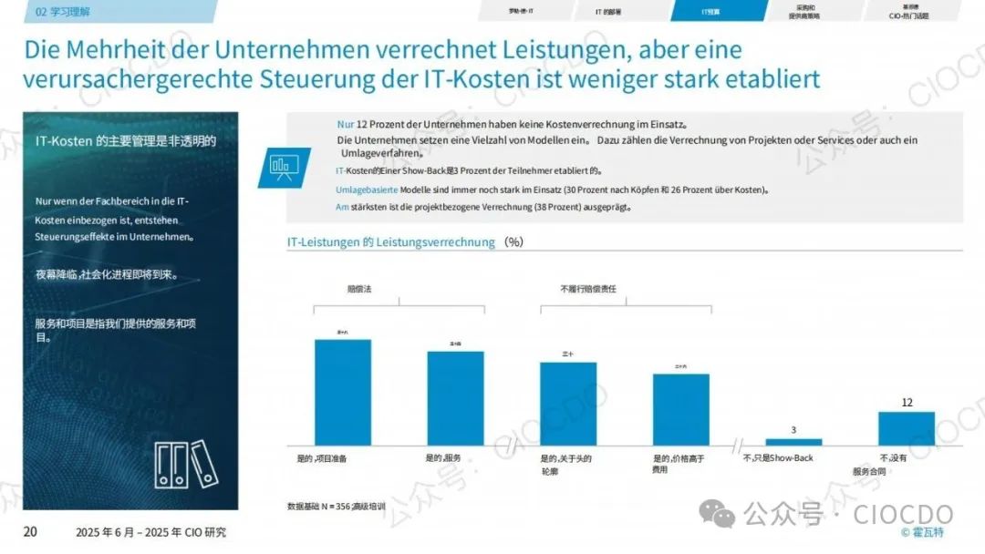 【核心矛盾】Horváth 2025年CIO研究報告揭示了一個核心矛盾:盡管IT的戰(zhàn)略地位日益重要,日益成為業(yè)務(wù)的賦能者和咨詢伙伴,但在當前的經(jīng)濟壓力下,其預(yù)算卻普遍面臨停滯或削減,投資重點也正從外部的“業(yè)務(wù)轉(zhuǎn)型”轉(zhuǎn)向內(nèi)部的“IT運營效率”。