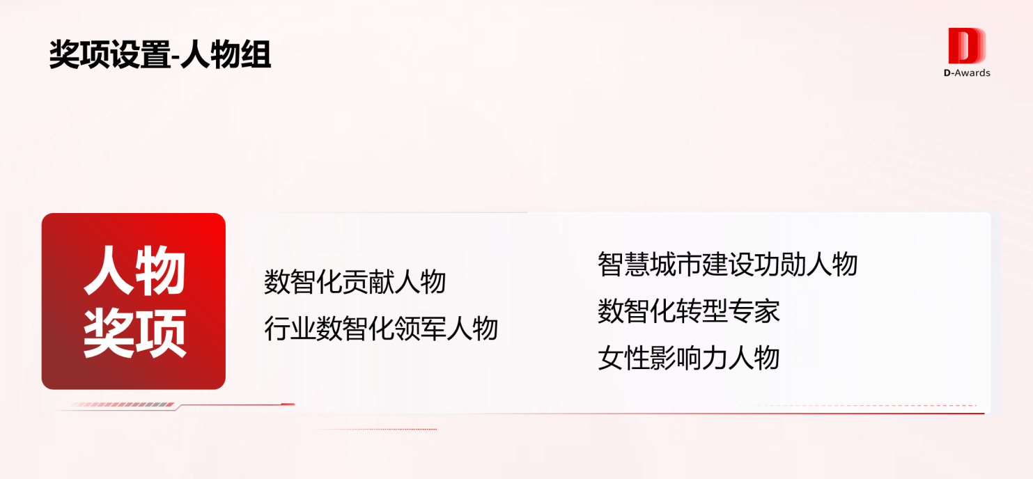 人物組獎(jiǎng)項(xiàng)則更注重人才價(jià)值,不僅表彰數(shù)智化貢獻(xiàn)人物、數(shù)智化轉(zhuǎn)型專家、行業(yè)數(shù)智化領(lǐng)軍人物,還特別設(shè)立智慧城市建設(shè)功勛人物、女性影響力人物等獎(jiǎng)項(xiàng),致敬在數(shù)智轉(zhuǎn)型中貢獻(xiàn)智慧與力量的先鋒個(gè)體,為行業(yè)樹立人才標(biāo)桿。