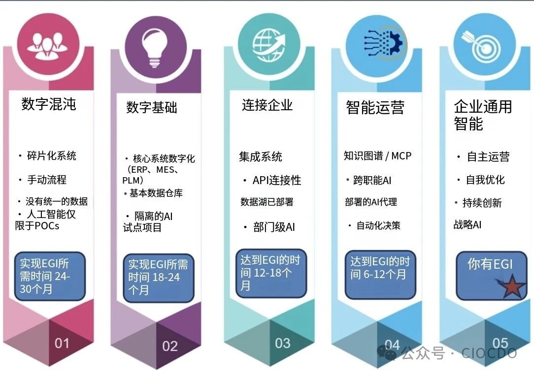 【結(jié)論與啟示:立即行動(dòng),構(gòu)建EGI,贏得未來】因此,企業(yè)在AI時(shí)代的競(jìng)爭成敗,不在于等待一個(gè)理論上的AGI的到來,而在于是否以及多快能夠構(gòu)建起自身的EGI。根據(jù)作者提出的EGI成熟度模型,大多數(shù)企業(yè)目前仍停留在孤立的實(shí)驗(yàn)或部門級(jí)試點(diǎn)階段,其最大的失敗點(diǎn)在于無法打破數(shù)據(jù)和治理的壁舍,實(shí)現(xiàn)從2級(jí)到3級(jí)(跨業(yè)務(wù)單元的集成智能)的跨越。行動(dòng)的號(hào)角已經(jīng)吹響,未來的贏家將是那些將EGI視為核心戰(zhàn)略優(yōu)先事項(xiàng),立即著手進(jìn)行數(shù)據(jù)架構(gòu)現(xiàn)代化、部署代理(Agent)驅(qū)動(dòng)的試點(diǎn)項(xiàng)目、并建立可信治理框架的企業(yè)。EGI革命已經(jīng)到來,率先實(shí)現(xiàn)它的企業(yè)將擁有未來。