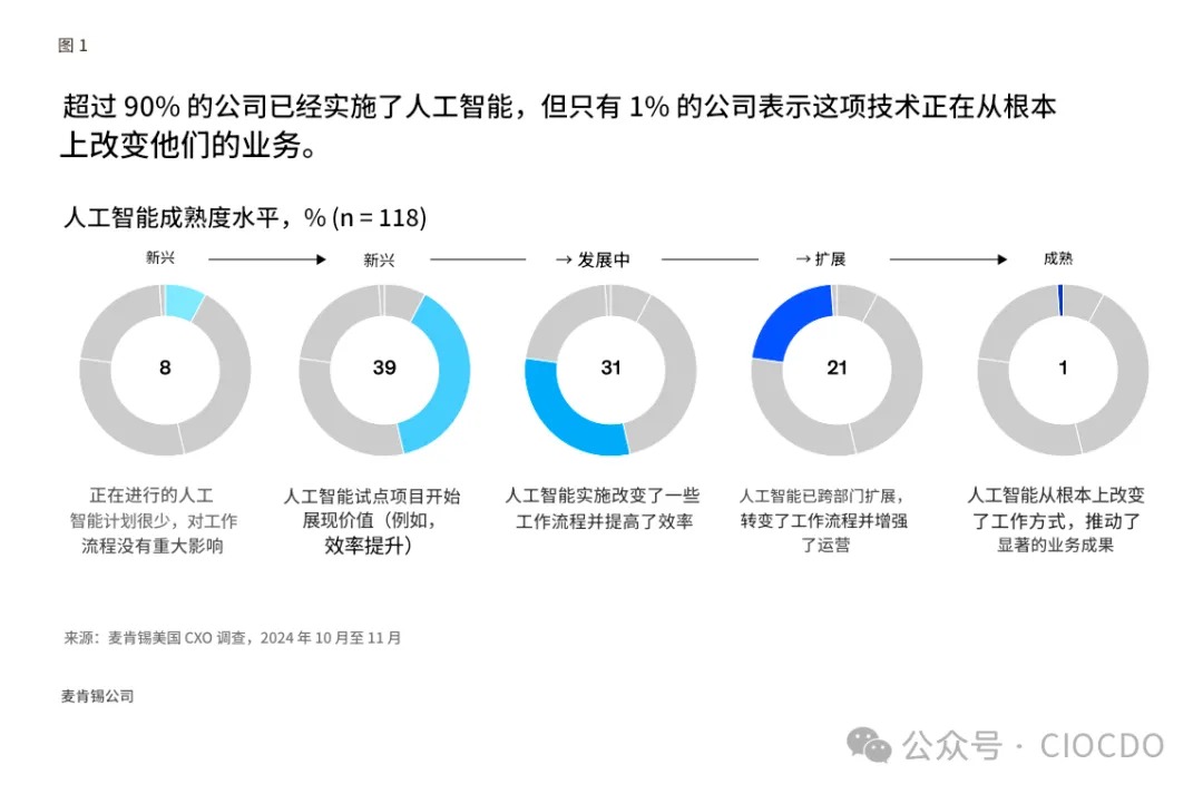 圖1:超過90%的公司已實施GenAI,但只有1%實現(xiàn)了顛覆性成果