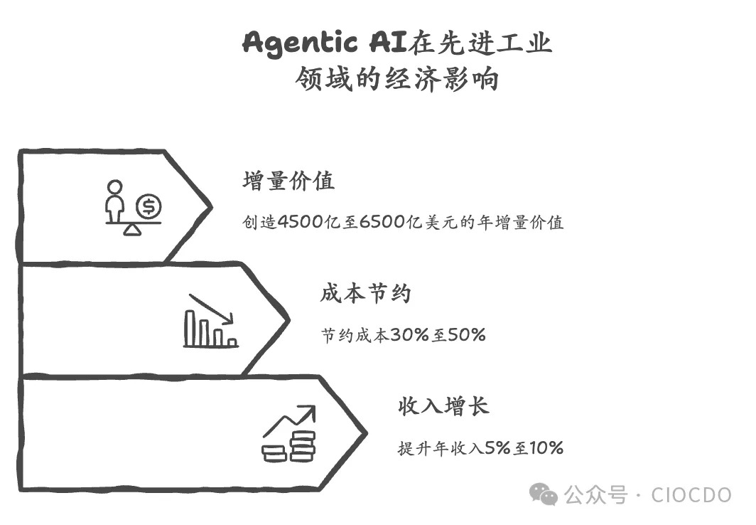 這帶來的商業(yè)價值是巨大的。麥肯錫預(yù)測,到2030年,Agentic AI能在先進工業(yè)領(lǐng)域(如汽車、制造業(yè)等):