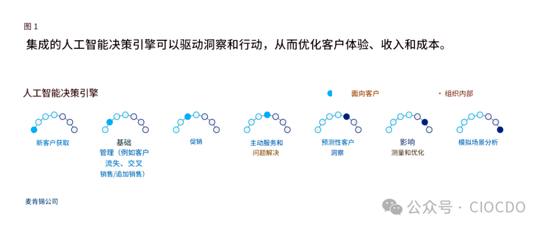 圖表解讀:這個(gè)AI決策引擎就像一個(gè)“中央大腦” ,它整合了所有客戶數(shù)據(jù)和預(yù)測性洞察,統(tǒng)一協(xié)調(diào)包括新客戶獲取、客戶升級/挽留、促銷活動(dòng)、主動(dòng)式服務(wù)在內(nèi)的所有互動(dòng),確保了體驗(yàn)的一致性和最優(yōu)化。?