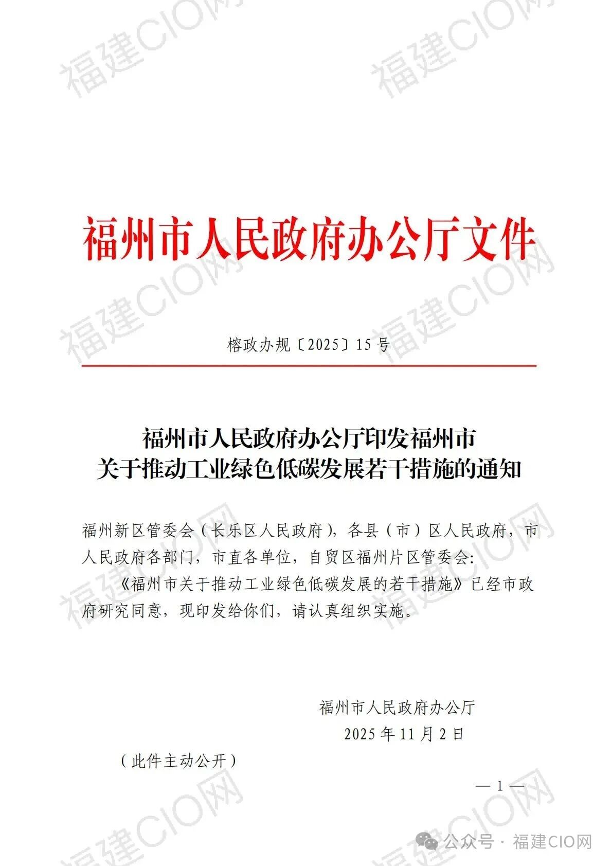 《福州市關(guān)于推動工業(yè)綠色低碳發(fā)展的若干措施》已經(jīng)市政府研究同意,現(xiàn)印發(fā)給你們,請認(rèn)真組織實(shí)施。 ? ? ? ? ?