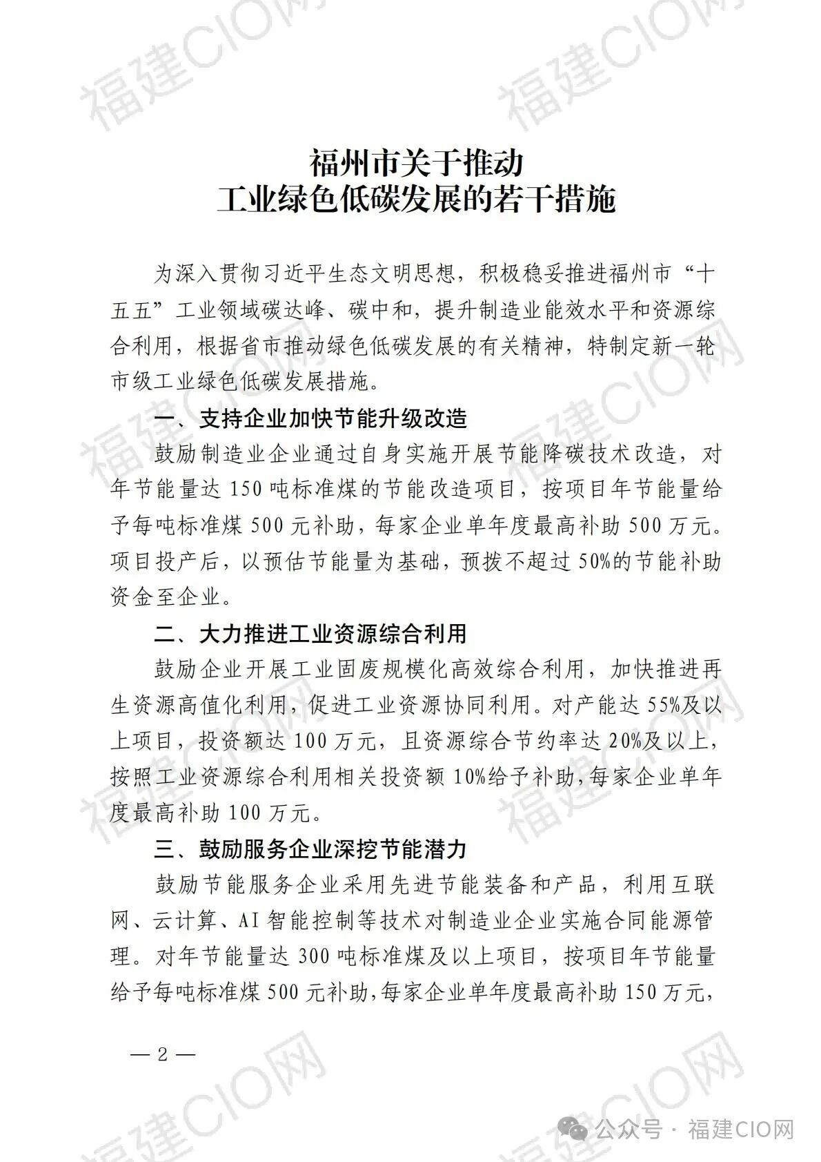 福州市關(guān)于推動工業(yè)綠色低碳發(fā)展的若干措施