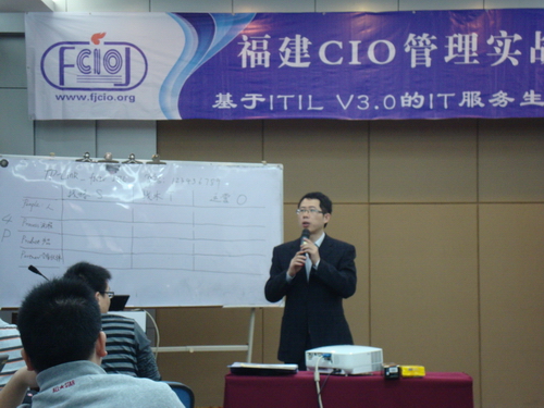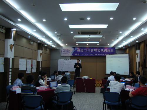 4月27日-29日,由福建信息主管(CIO)網(wǎng)舉辦的福建CIO“基于ITIL V3.0的IT服務(wù)生命周期管理”高級實訓(xùn)班在福州開班。本次培訓(xùn)講師——英國曼徹斯特大學(xué)高級計算機科學(xué)及ICT管理碩士、英國計算機協(xié)會專業(yè)會員(MBCS)、全球IT服務(wù)體系整合經(jīng)驗企業(yè)架構(gòu)師、廣州越維科技有限公司培訓(xùn)總監(jiān)陳鳴先生為來自福州、廈門、泉州等地的近20位學(xué)員進(jìn)行了為期三天的實訓(xùn)。南京軍區(qū)福州總醫(yī)院計算機中心主任陳金雄、興業(yè)銀行股份有限公司信息科技部數(shù)據(jù)中心主任詹志輝、福建古易信息科技有限公司首席咨詢顧問羅俊輝等應(yīng)邀參加了兩個晚上的沙龍。