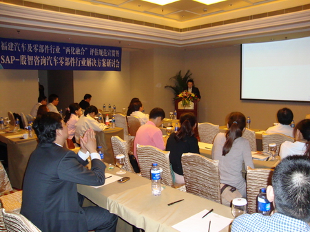 為幫助汽車及零部件工業(yè)企業(yè)科學(xué)制訂轉(zhuǎn)型戰(zhàn)略與行動方案,宣貫及推進(jìn)工業(yè)企業(yè)“兩化融合”評估規(guī)范,加快福建省信息化與工業(yè)化融合的進(jìn)程,2012年5月16日上午,由東南(福建)汽車工業(yè)有限公司(以下簡稱:東南汽車)、福建信息主管(CIO)網(wǎng)(以下簡稱:福建CIO網(wǎng))聯(lián)合主辦的“福建CIO走進(jìn)東南汽車價值體驗”活動在閩侯青口東南汽車城舉行。上午活動邀請到了東南(福建)汽車工業(yè)有限公司資訊部李永斌經(jīng)理、陳華陽課長,福建奔馳汽車工業(yè)有限公司IT部劉勝梅經(jīng)理分享東南汽車及福建奔馳“兩化融合”經(jīng)驗,來自青口及福州市區(qū)汽車及零部件供應(yīng)商的企業(yè)高管、信息主管(CIO)等30余位企業(yè)代表參加了本次價值體驗活動。下午的SAP與殷智咨詢汽車零部件行業(yè)解決方案研討會,SAP中國公司亞太區(qū)行業(yè)解決方案專家:Ricky Sio蕭其善先生、殷智信息技術(shù)咨詢(上海)有限公司高級方案顧問錢伽諾先生做了專題報告,有關(guān)嘉賓還參加沙龍互動交流。本次活動體現(xiàn)了汽車龍頭企業(yè)、零部件企業(yè)和軟件廠商希望共同推動汽車零部件供應(yīng)鏈“兩化融合”的決心,積極響應(yīng)政府推動“兩化深度融合”的戰(zhàn)略。