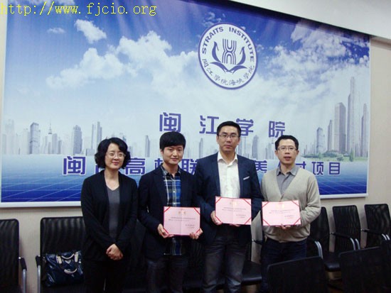 24日“精彩職場”福建首席信息官(CIO)大學(xué)巡講,伴著細(xì)雨,開場了。閩江學(xué)院海峽學(xué)院副院長林中燕教授聘請六位講師作為學(xué)院“企業(yè)導(dǎo)師”,并授牌合影。