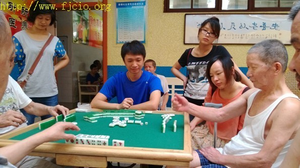志愿者陪同老人打麻將